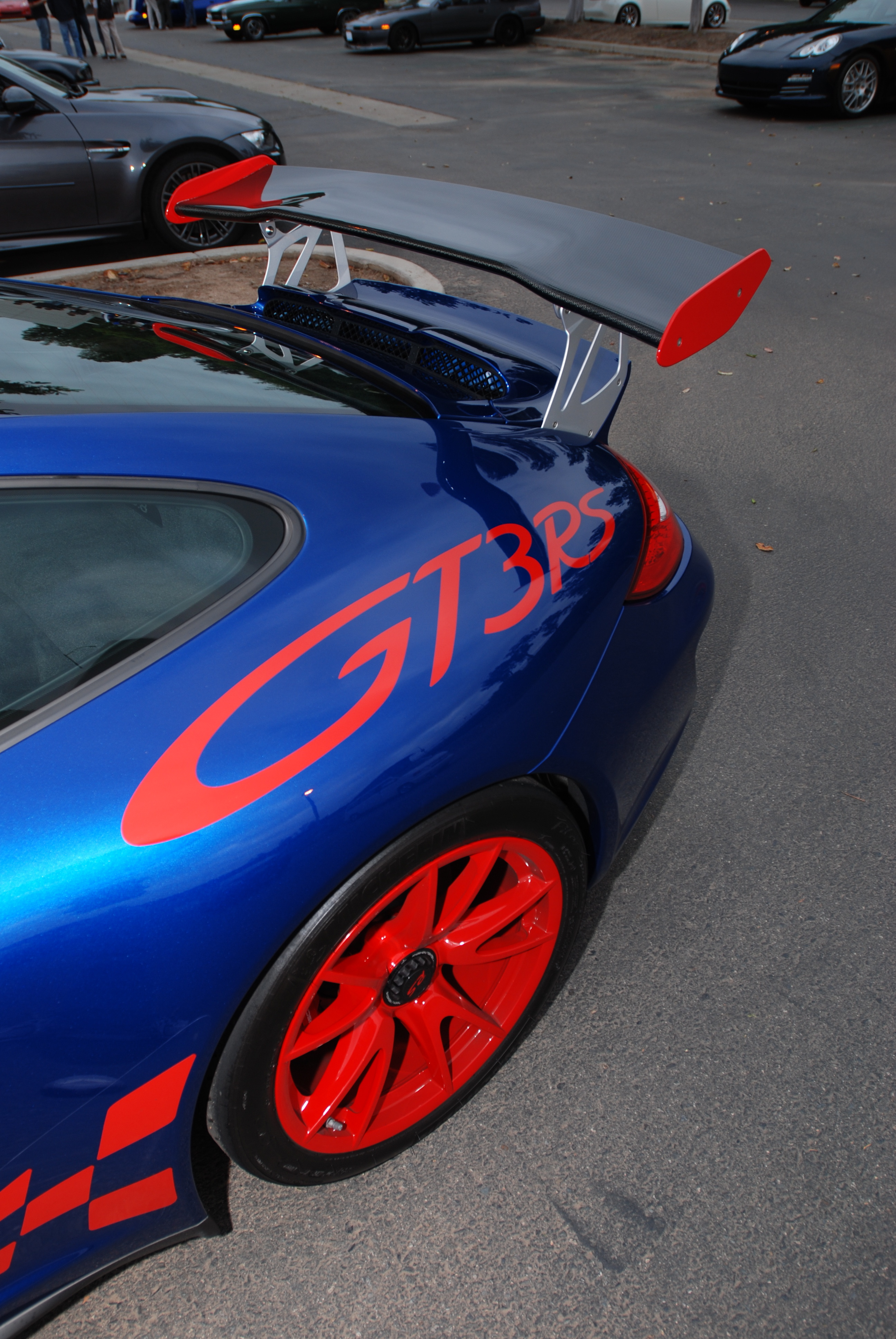As I was walking away from the Scion, I caught a glimpse of a white Porsche moving through the parking lot. As I got closer, I realized this was the elusive white Porsche GT3 RS 4.0 that I had heard about the previous week, making its way out of the parking lot.