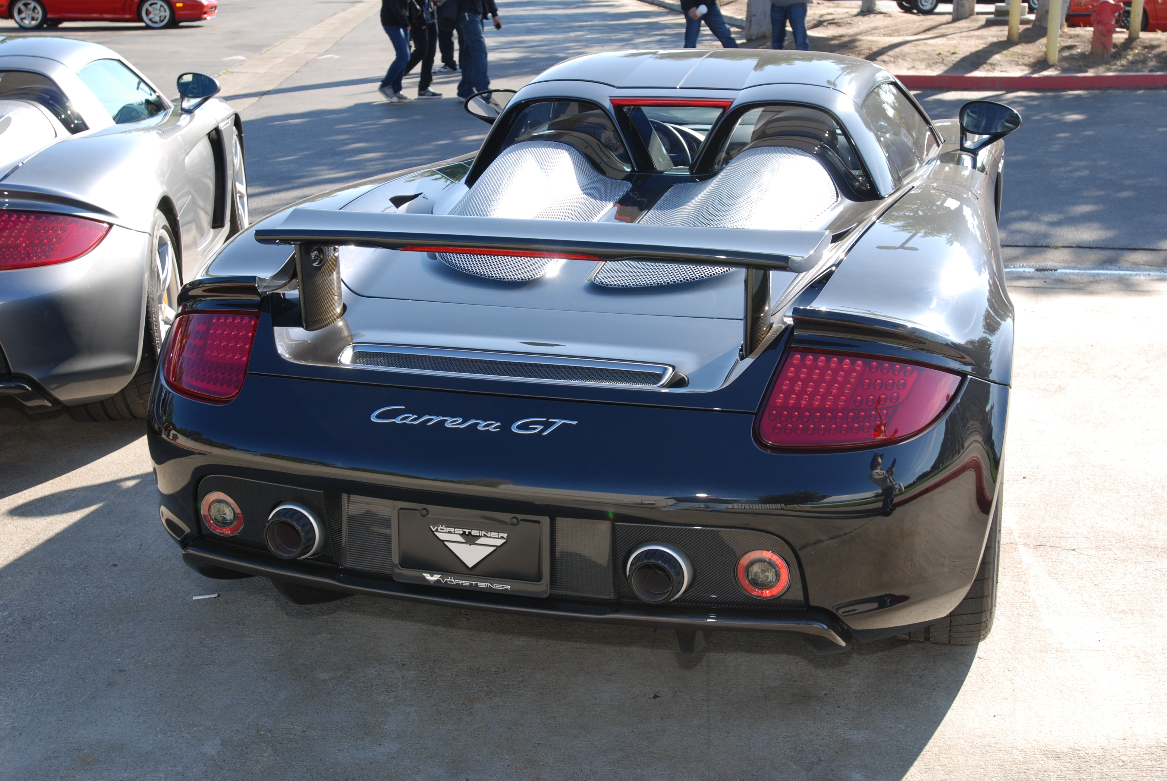 Saturday morning as I pulled into the parking lot at Cars and Coffee / Irvine, and made my way towards the row where I usually park, I was greeted by the lunar eclipse bathed, silhouettes of two Truspeed Porsche GT3 cup cars parked diagonally in formation, anchoring an all Porsche row. Mixed in amongst the row were several Porsche 356’s , a couple early 1960’s short wheelbase 911’s, a Porsche 924, 914-6, and a handful of 911’s from the 1970’s, ’80’s and 90’s. And aligned like bookends, opposite the cup cars were two matching speed yellow Porsche 996’s: one a tricked-out 996 GT3 and the other, a 2003 GT2.
