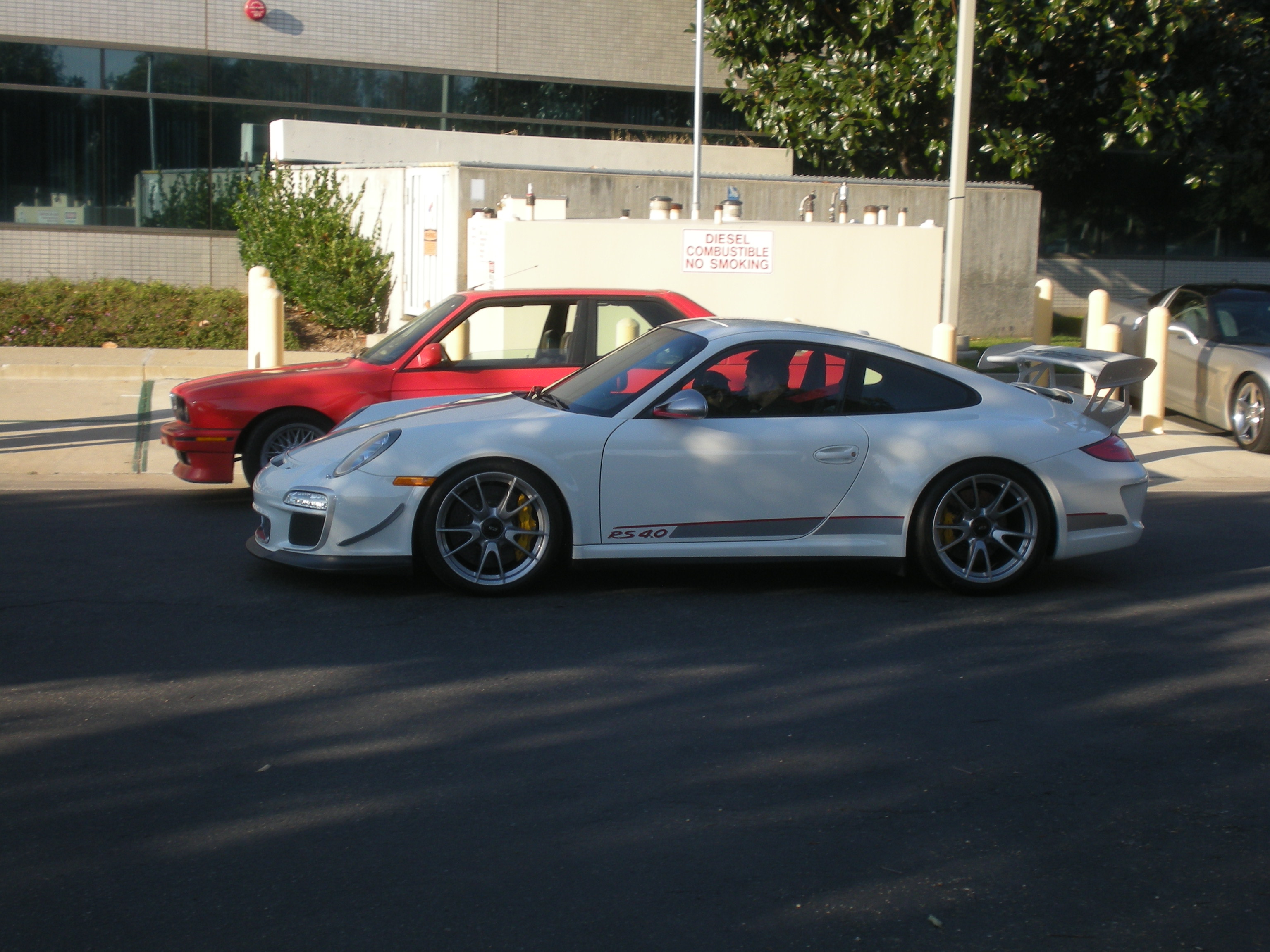 As I was walking away from the Scion, I caught a glimpse of a white Porsche moving through the parking lot. As I got closer, I realized this was the elusive white Porsche GT3 RS 4.0 that I had heard about the previous week, making its way out of the parking lot.
