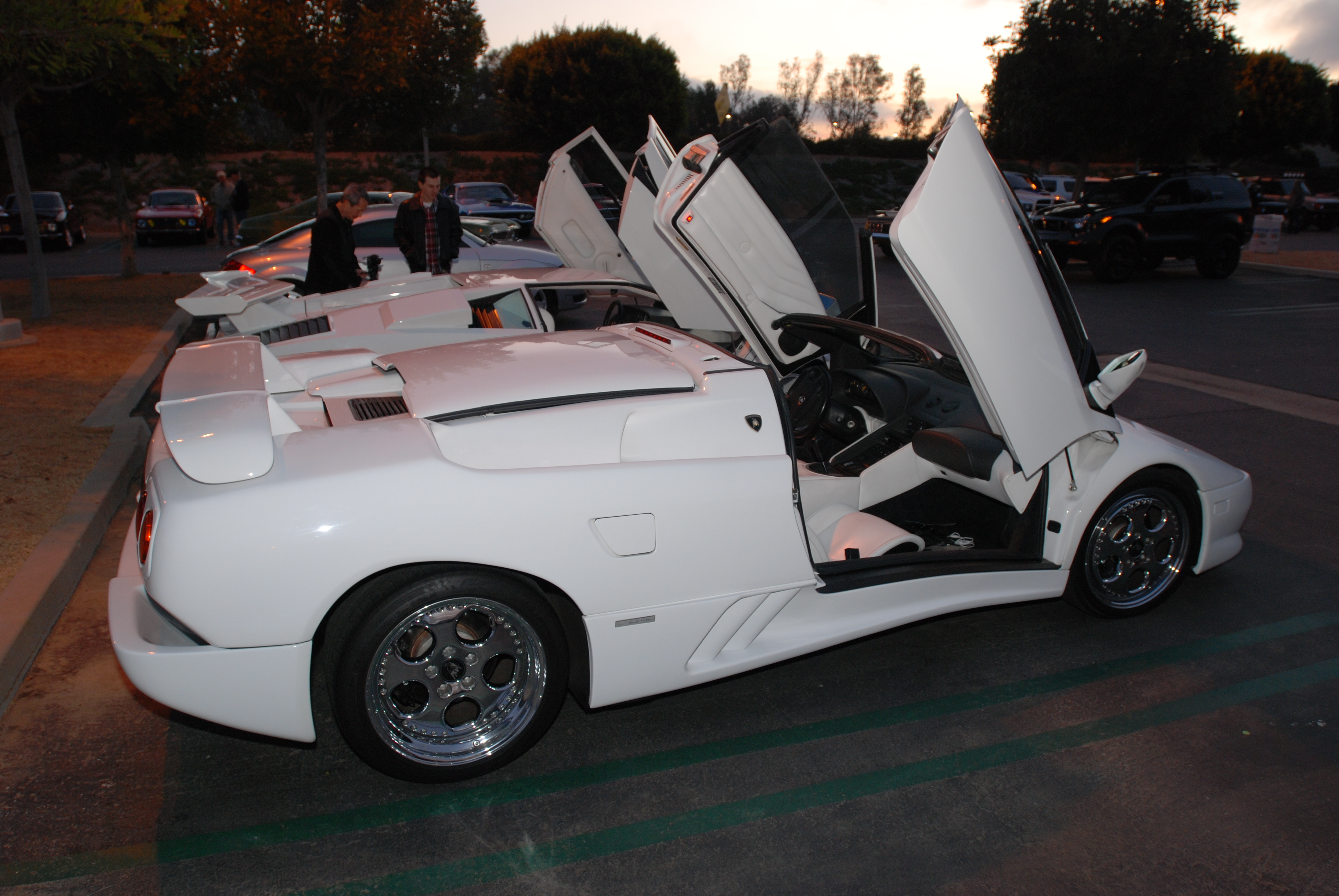 White Lamborghini Diablo VT roadster _3/4 rear,taillight view_Cars&Coffee/Irvine_2/18/12