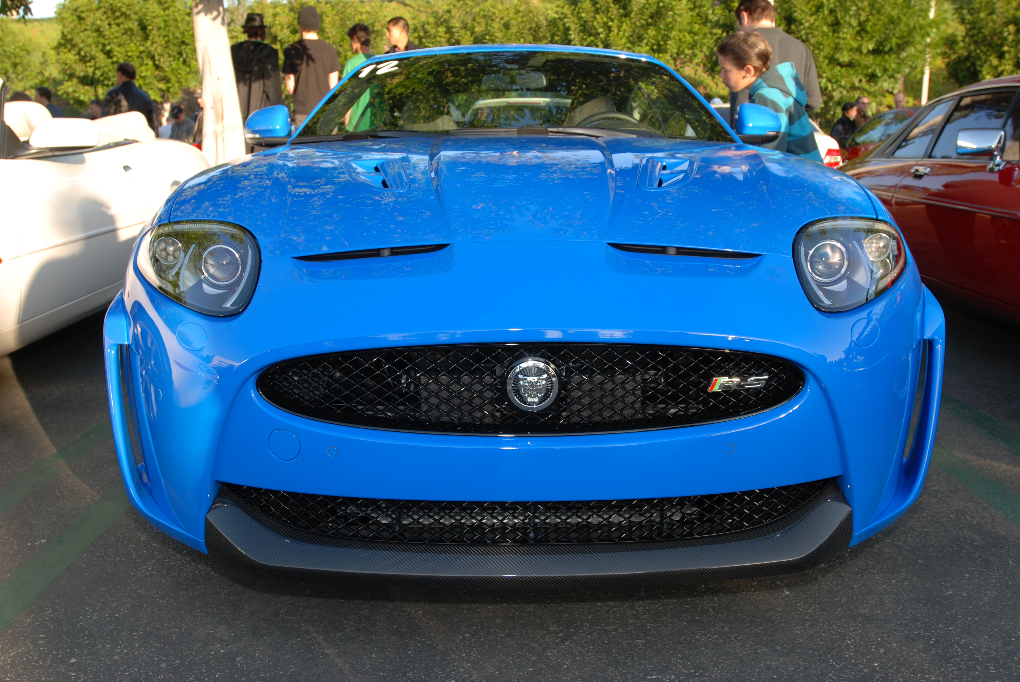 French Racing Blue Jaguar XKR-S coupe_front view_Cars&Coffee/Irvine_2/18/12