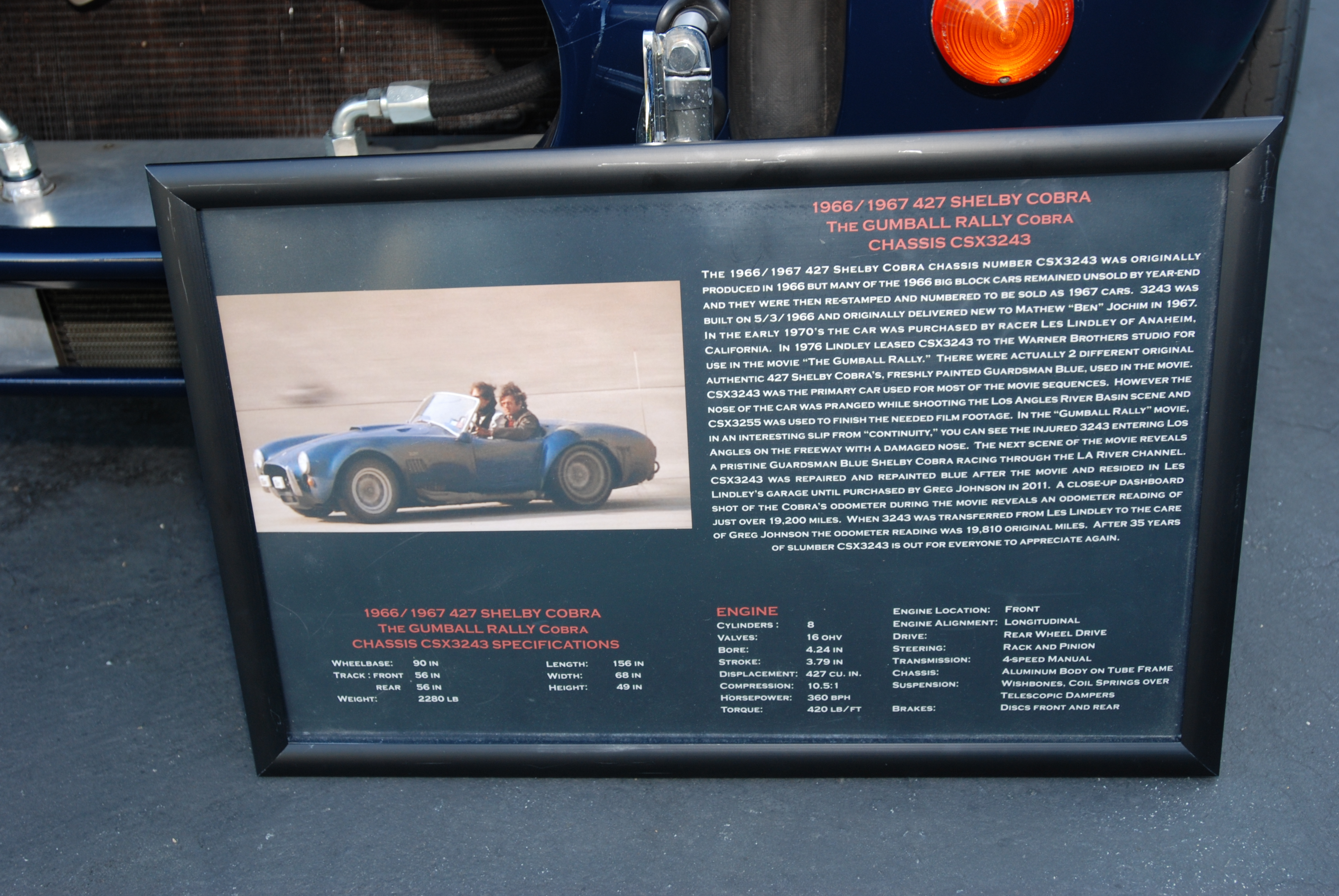One of the standouts from the Shelby Cobra’s gathered that morning was this Guardsman Blue, 1966 427 Shelby Cobra seen below. What made this car even more unique, was the role it played in the 1976 movie “The Gumball Rally”. For those of you that remember the film, yes, this is the actual Guardsman Blue, 427 Shelby Cobra featured throughout the movie.