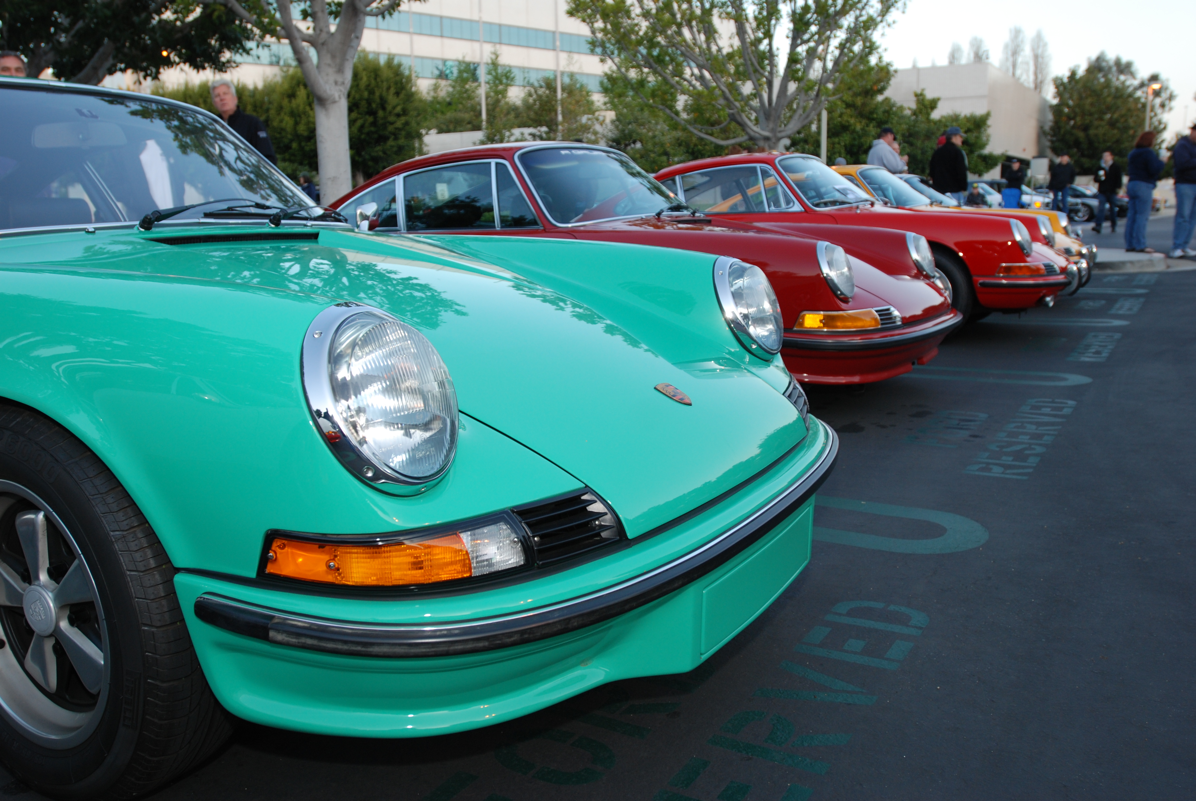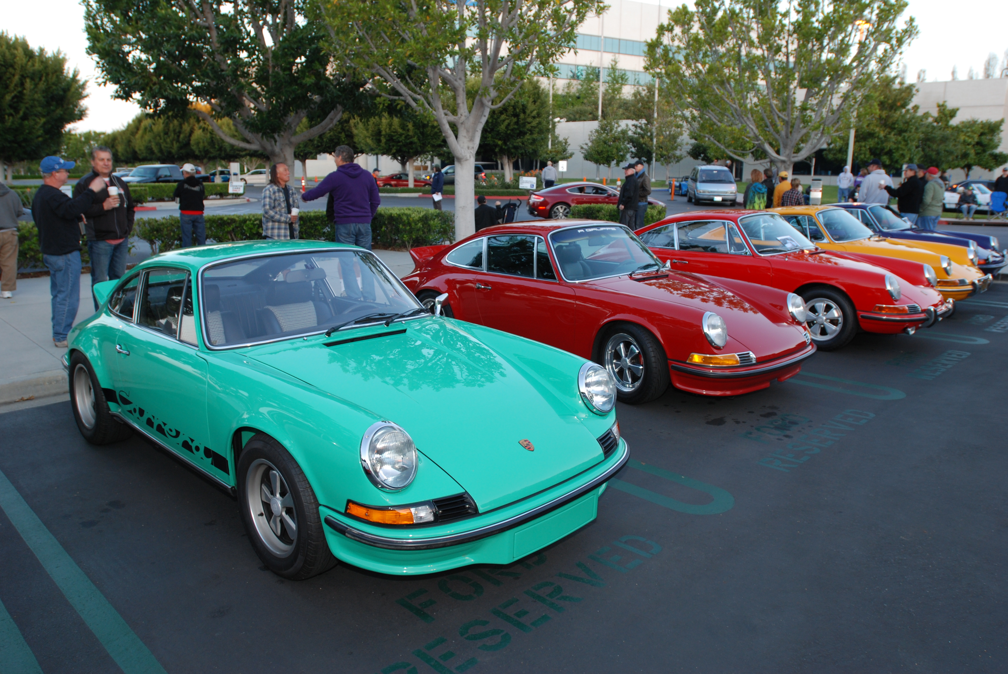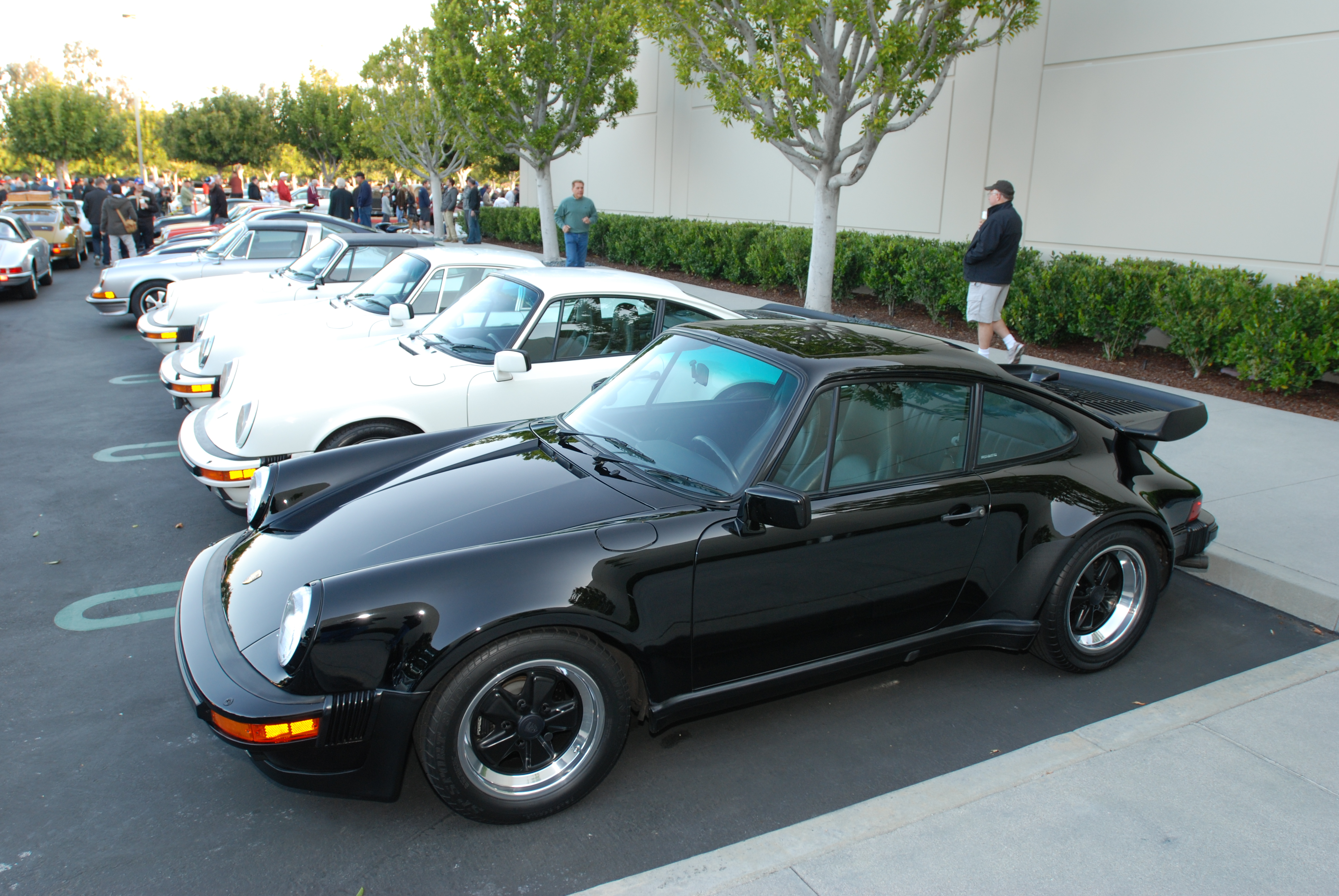 For a change, the early morning skies Saturday morning were clear and dry. As I pulled into the parking lot still cloaked in darkness, I was waved into the “featured” lot, to join the already present assortment of rainbow-hued Porsche 911’s. As I rounded the parking median, I encountered my friend Gene backing his black 930 turbo into a corner parking spot, and after he was settled in, I grabbed the space immediately to his right. As the lot continued to fill with even more 911’s, my friend Dave arrived in his 1984 Slate Gray 930 Turbo, debuting a brand new, upgraded turbo motor. By the time the sun had risen, the lot was filled with an even greater variety of Porsches, and what an amazing, colorful collection it was…