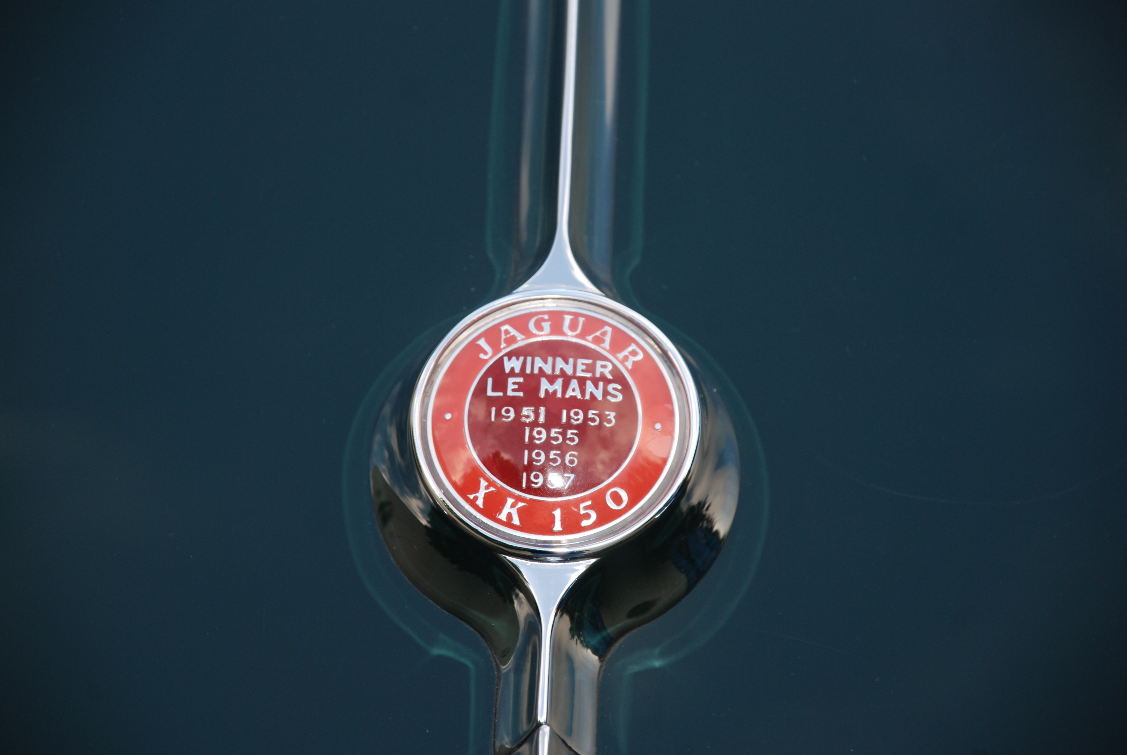 Green Jaguar XK 150_hood emblem and grill badge_Cars&Coffee_5/28/12