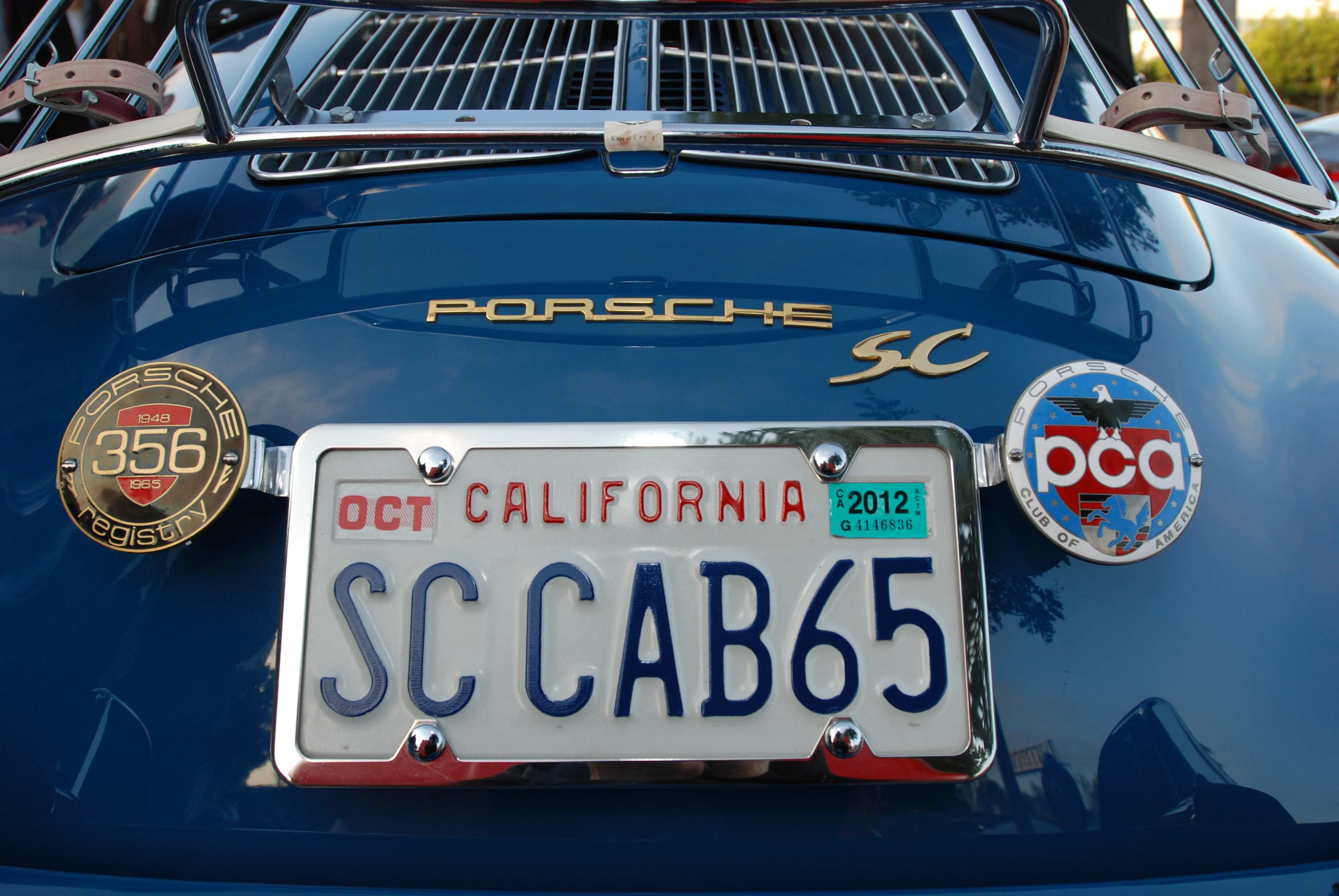 Blue Porsche 356 SC cabriolet_rear badges_Cars&Coffee_5/28/12