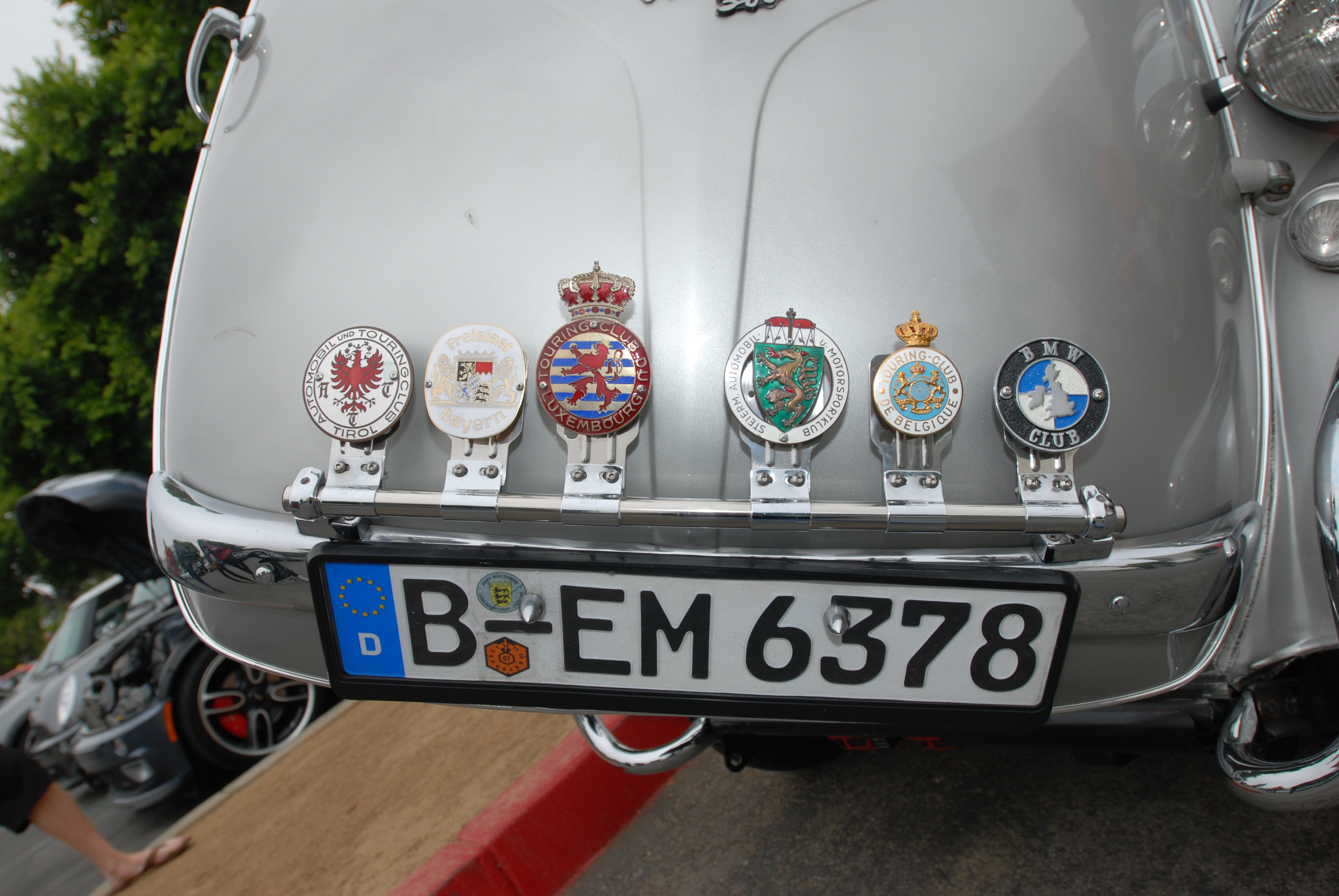 As I walked through the rows of cars Saturday morning at Cars&Coffee, it dawned on me that regardless of the makes or models present, each and every car to one degree or another possessed an often overlooked detail; vehicle graphics, be it dimensional manufacturers badges or applied decal/vinyl graphics. And in addition to these basic badges, a large percentage of these cars also displayed secondary ID in the form of car club badges, installed on either vehicle grills or on badge bars (i.e. driving light bars), typically mounted at the front of the car.