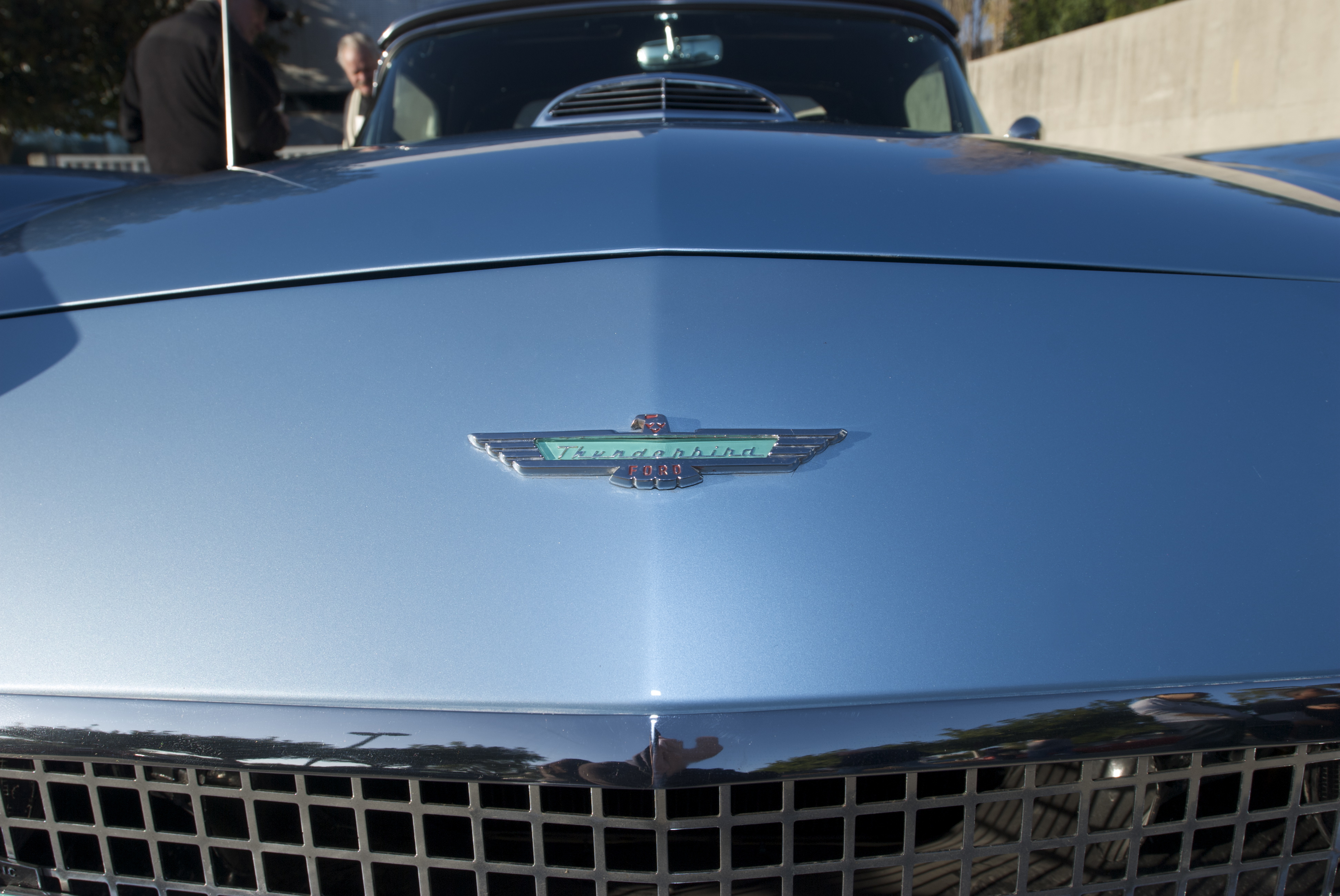 Blue 1957 Ford thunderbird_front hood emblem_Cars&Coffee_5/28/12
