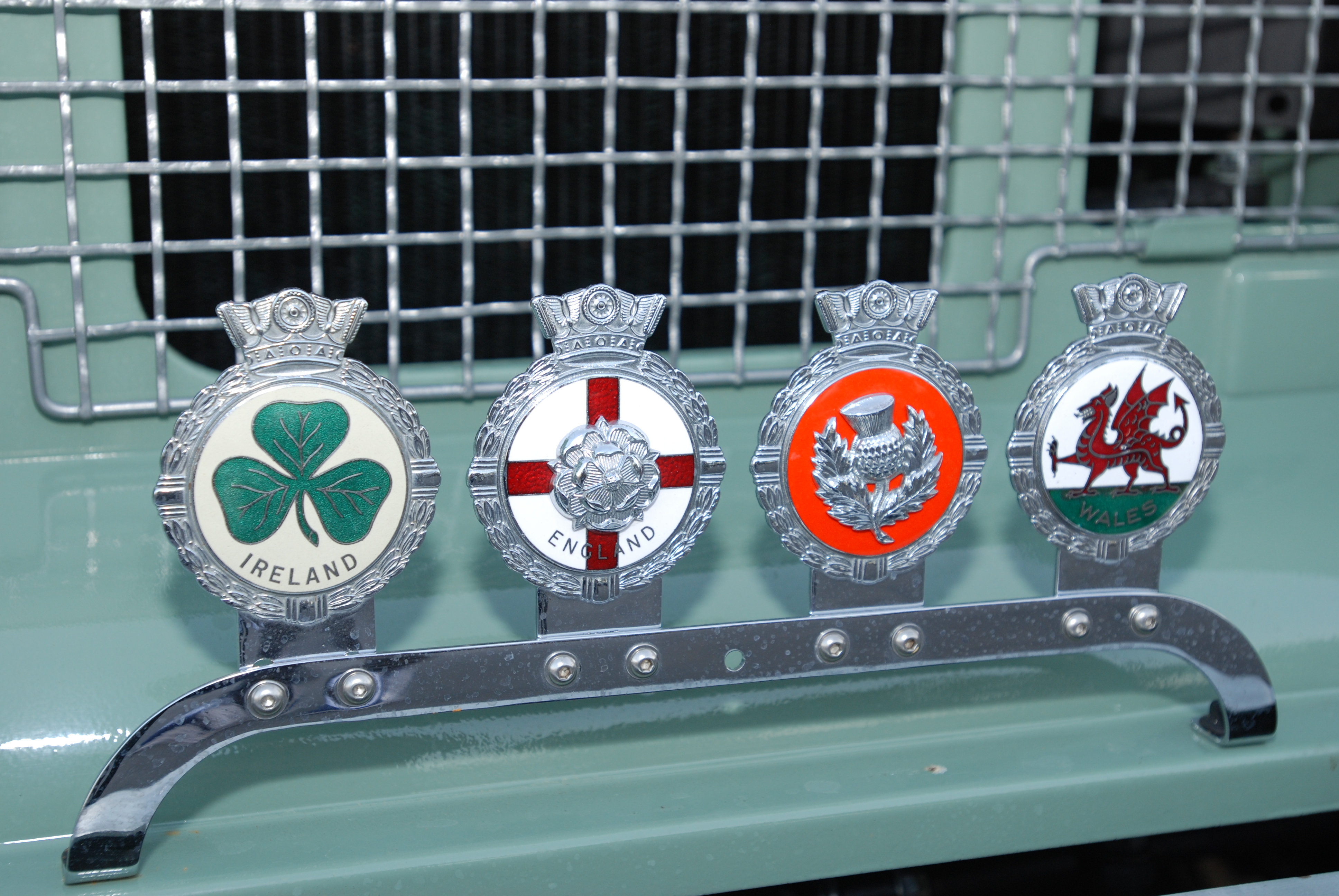 Green Land Rover_front grill badge bar and badges_Cars&Coffee_5/28/12