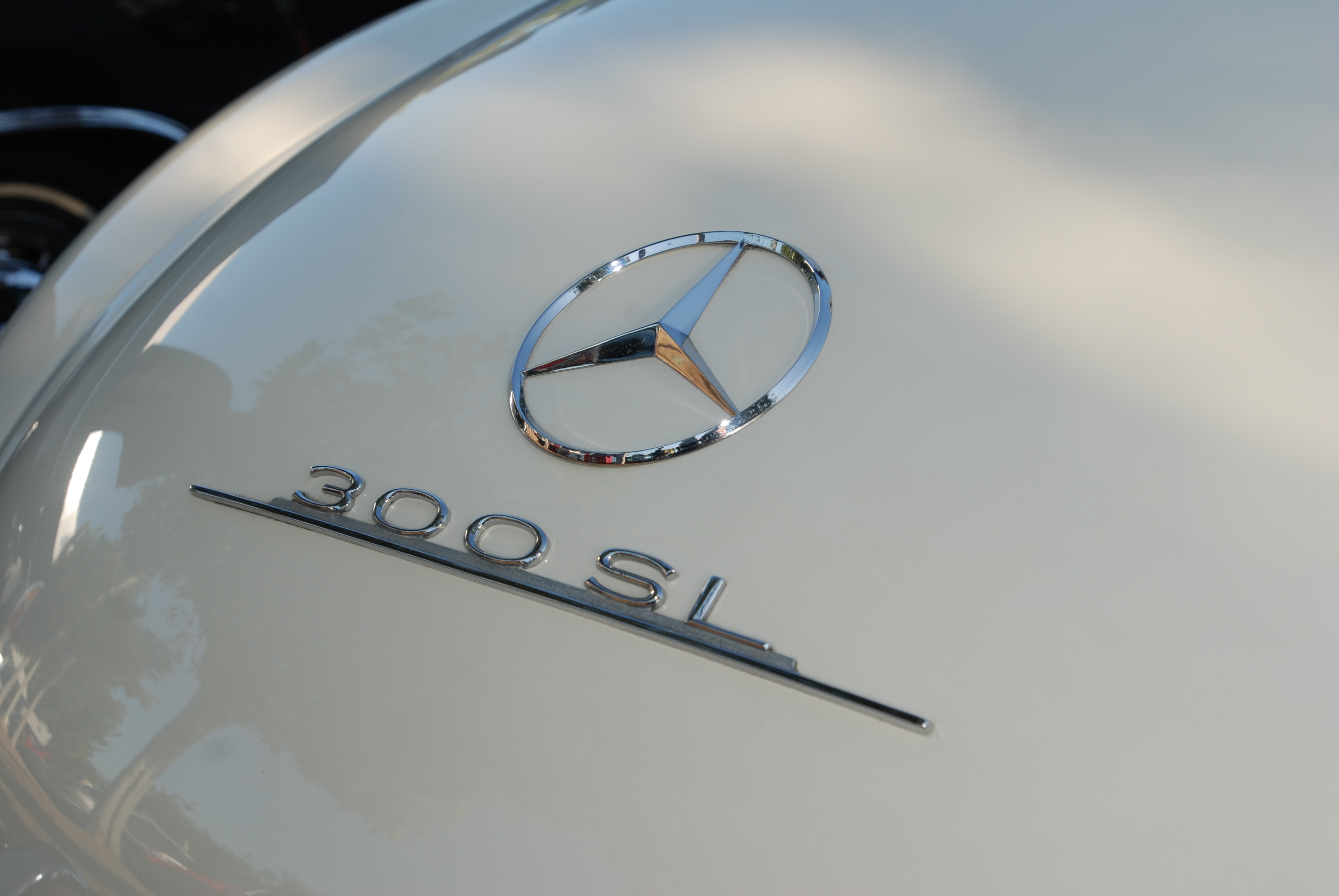 Ivory Mercedes Benz 300SL_rear trunk lid badging_Cars&Coffee_5/28/12