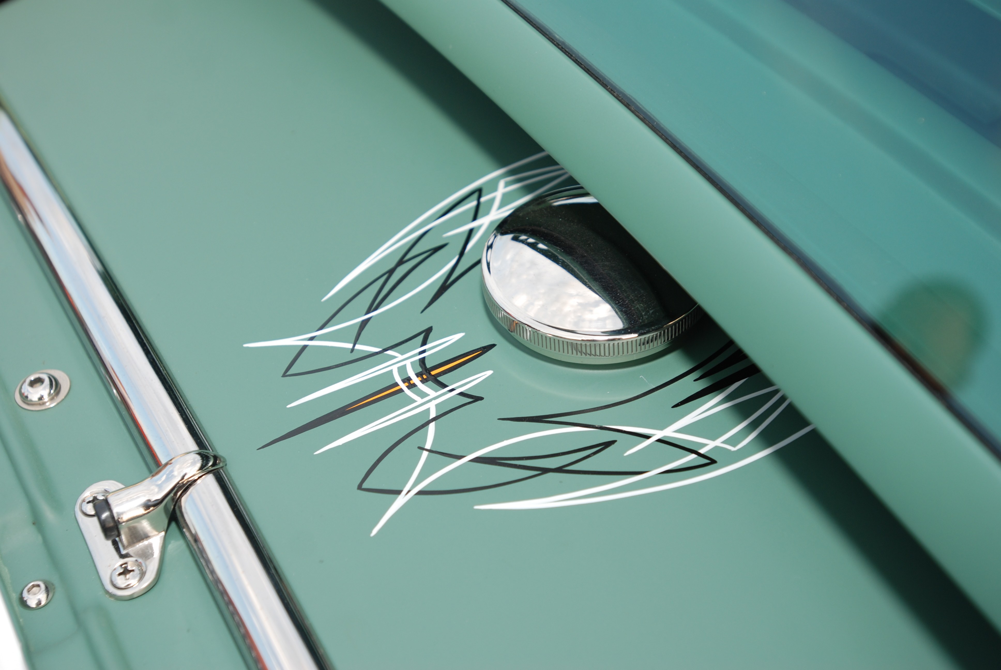 And located out back, applied onto the rear body work, was this design accent celebrating the artistry of pin stripping…