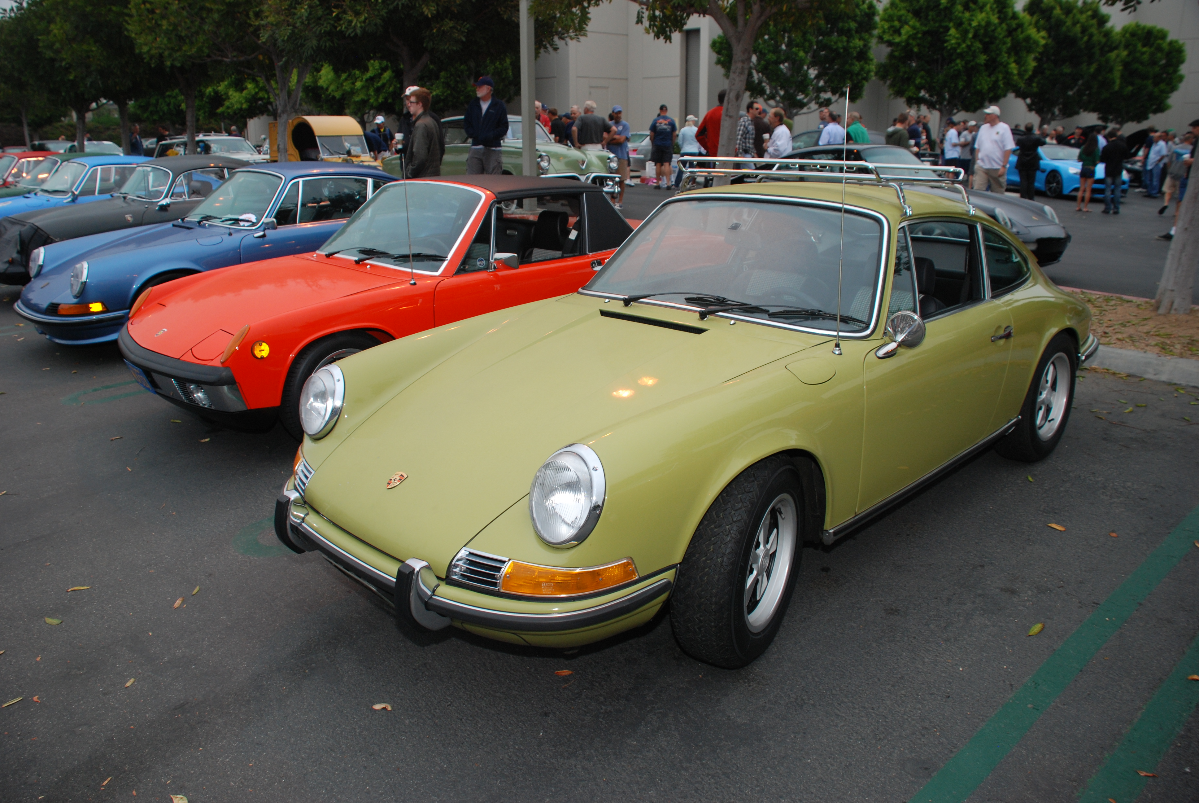 Lime Green 1970 Porsche 911E_3/4 front view Porsche row_Cars&Coffee/Irvine_August 25, 2012