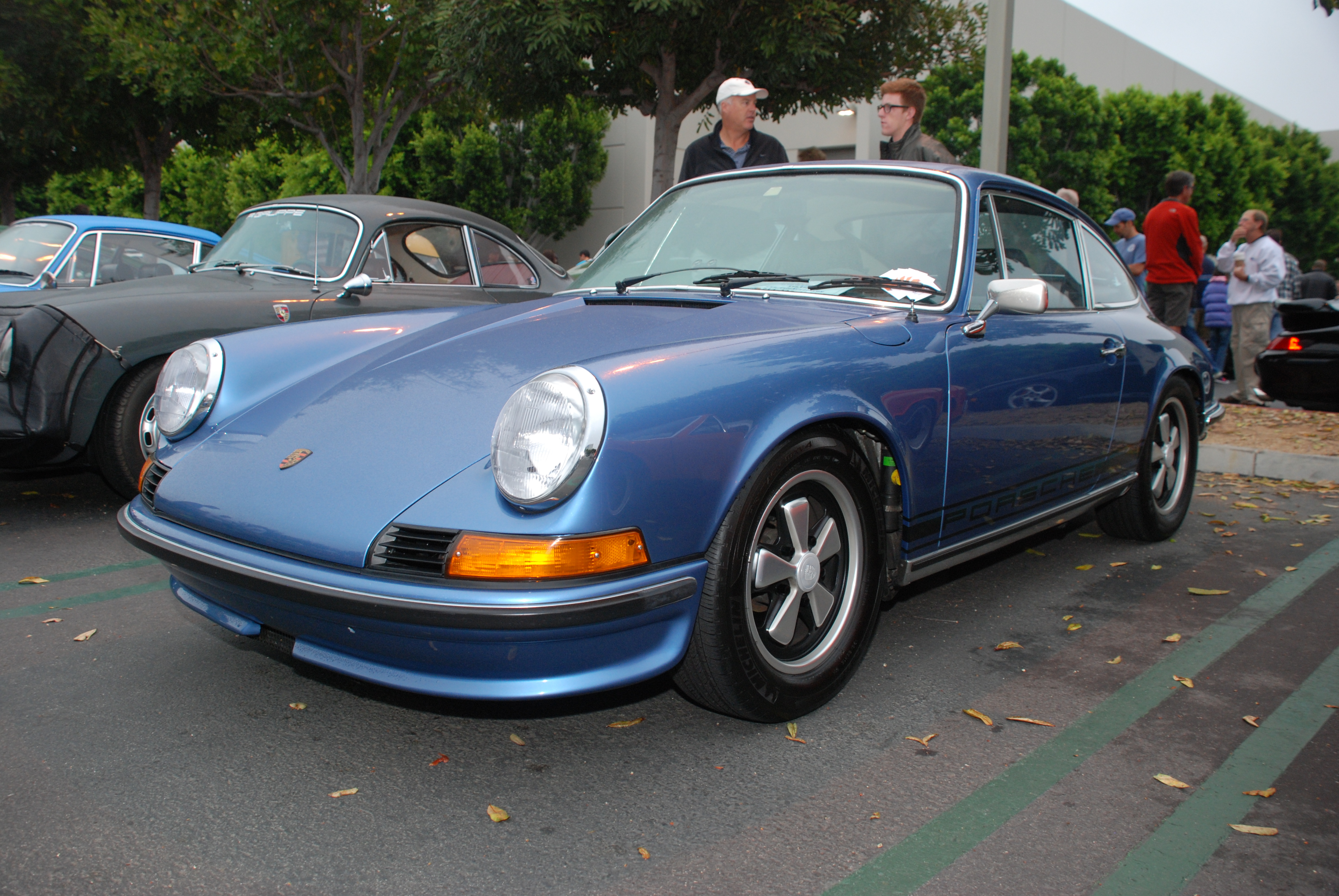 Gemini Blue 1973 Porsche 911E_3/4 rear view Porsche row_Cars&Coffee/Irvine_August 25, 2012