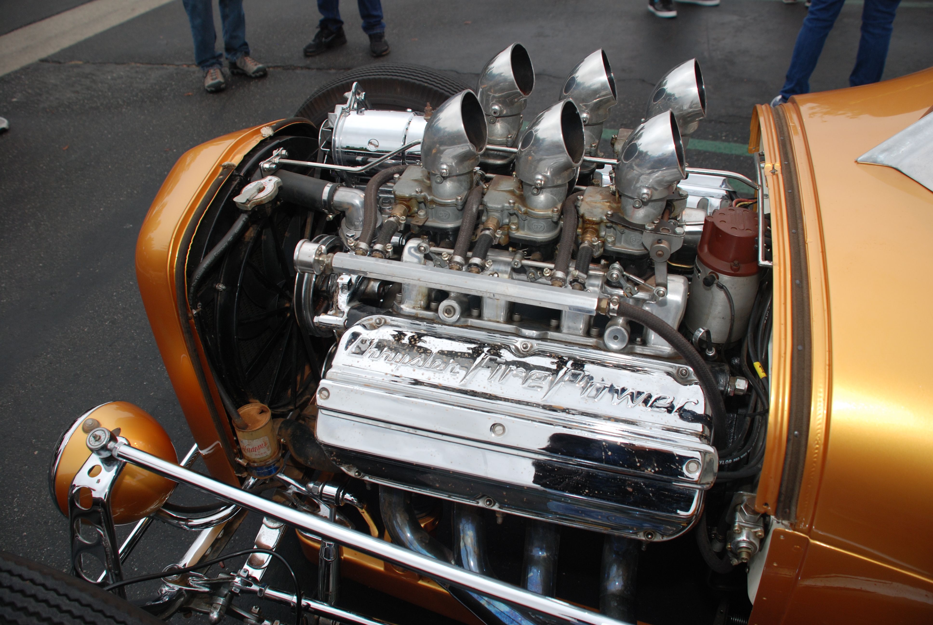 The gold hot rod with the Chrysler FIre power motor was really cool; I think that motor may be a 1950s vintage 352 Hemi.