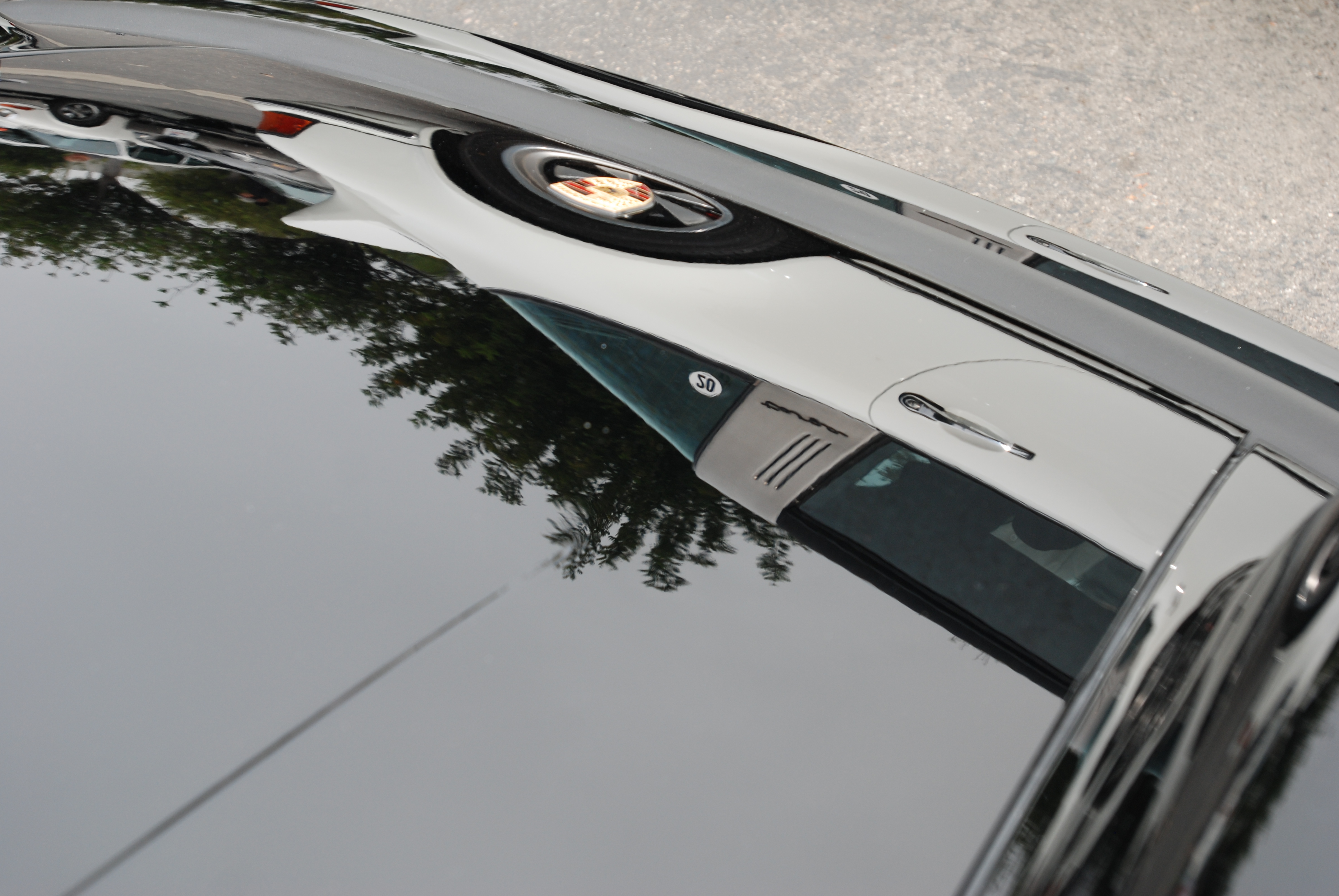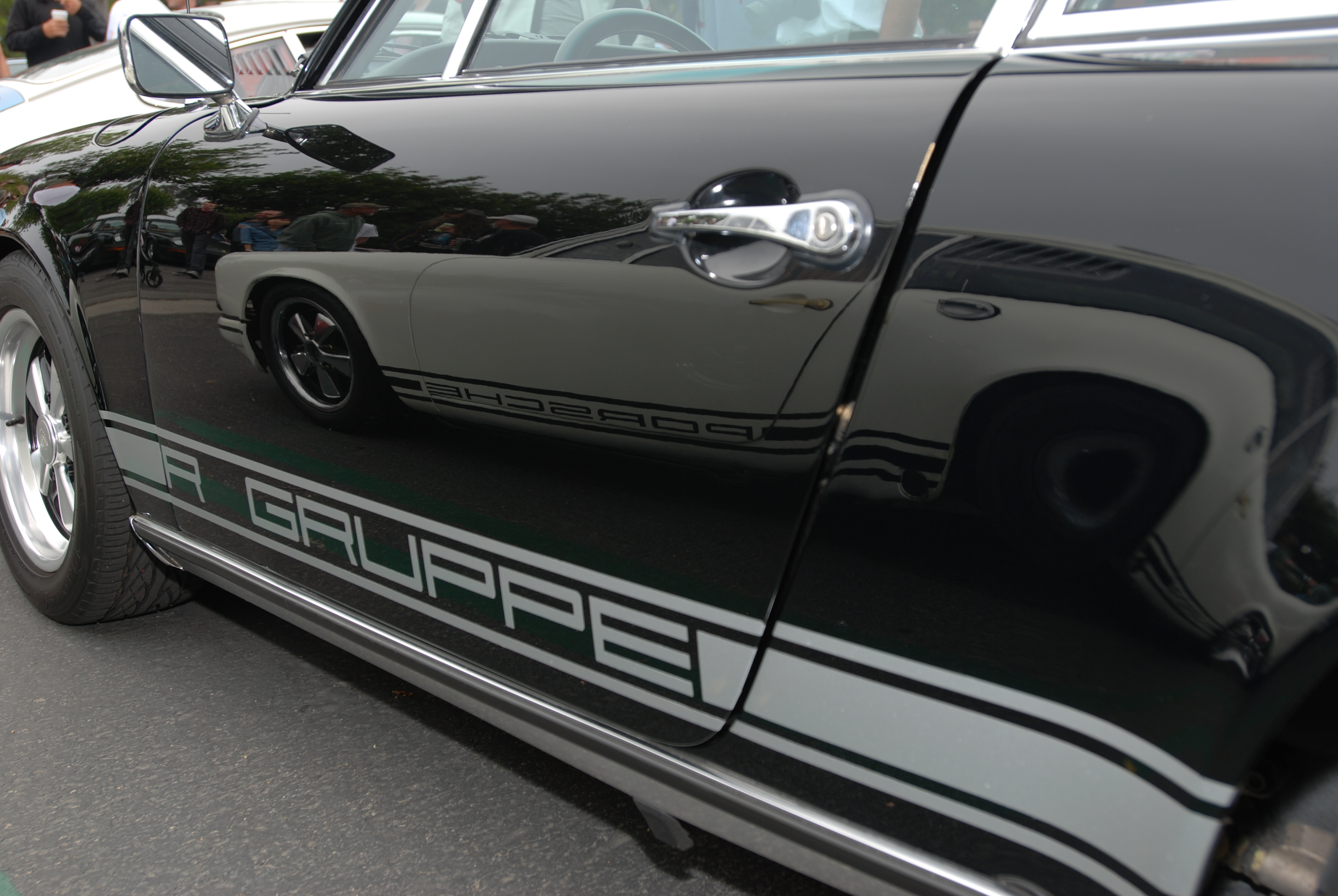 Porsche 914-6 GT reflection captured in the front fender of a black Porsche 993 coupe…