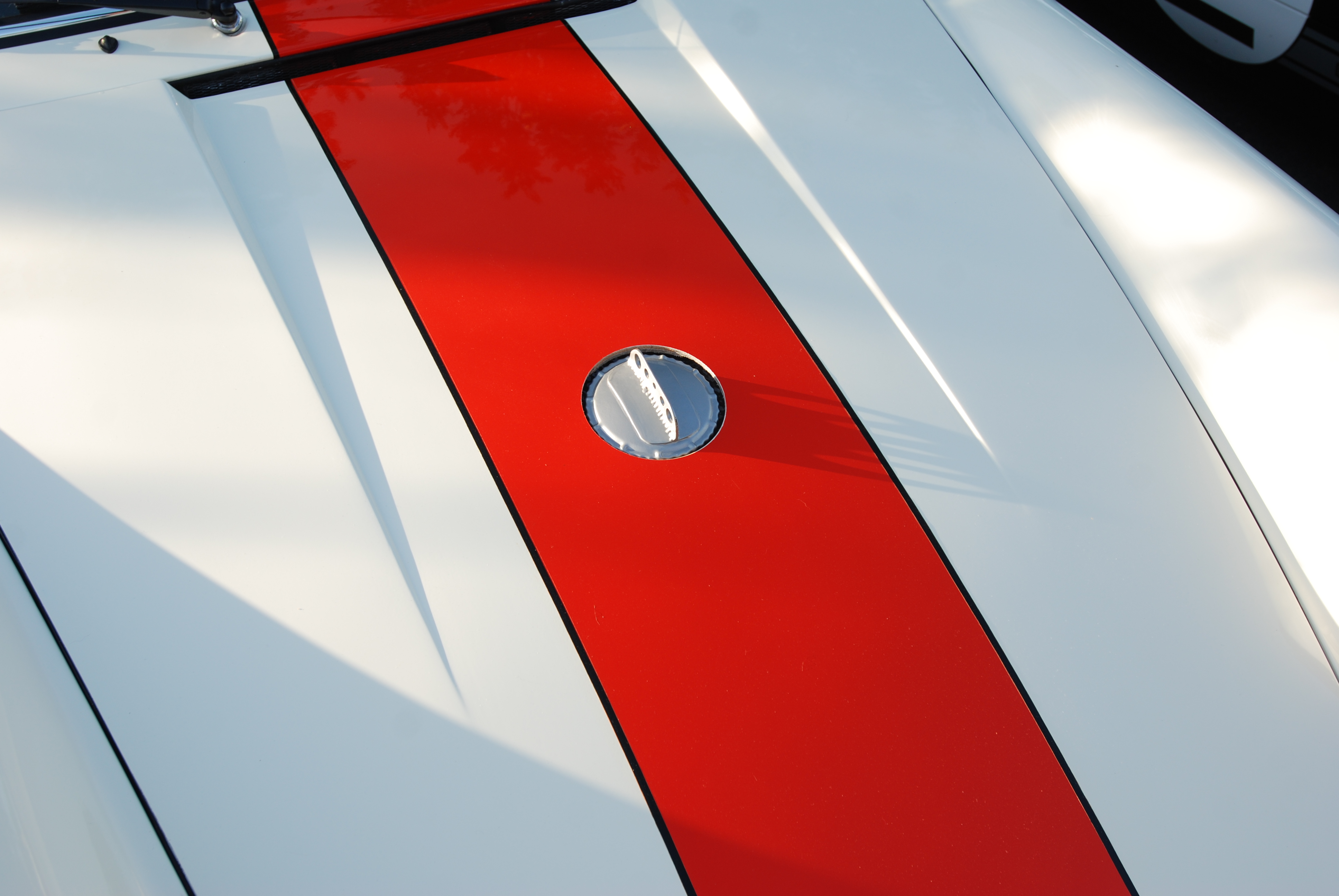 So with the sun on the rise, I headed off in search of a new batch of photographic subjects. As I walked down Porsche row, the lighting across the hood of a 1967 911R tribute caught my eye. The combination of the highlights and shadows not only defined the shape and detail lines of the hood, but added further interest in the form of the shadow cast by the centrally located fuel filler cap, with its blood orange stripe providing just the right amount of accent color…