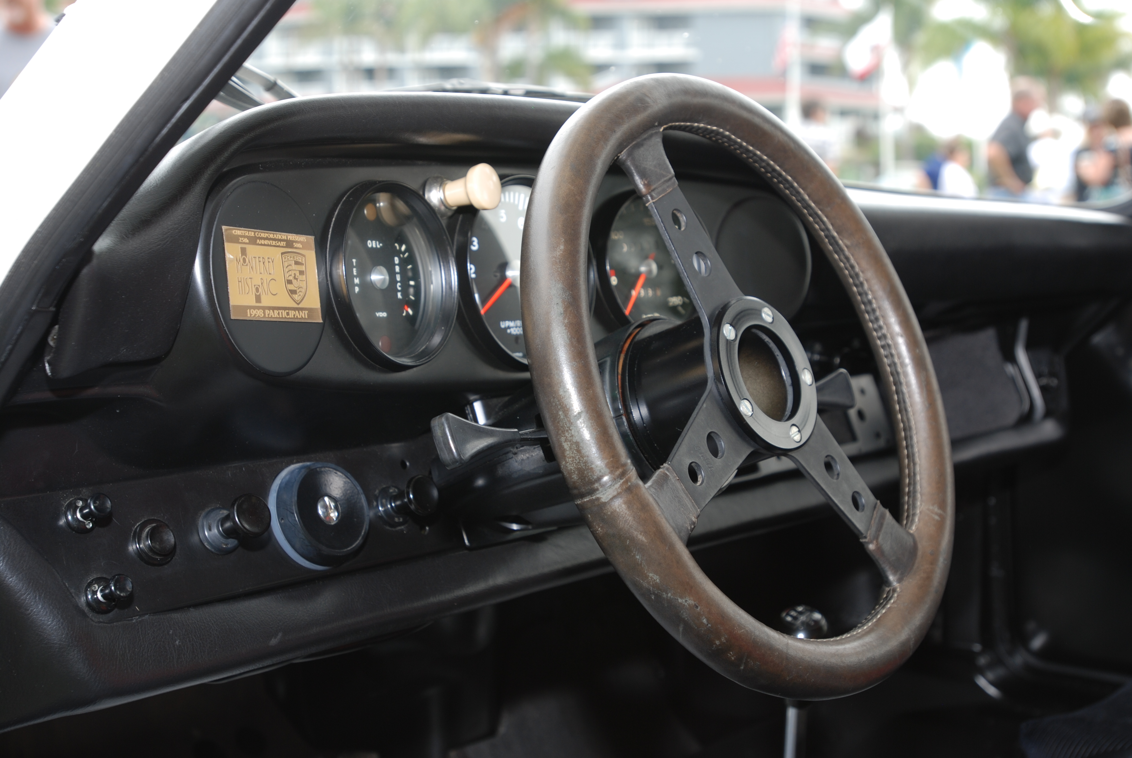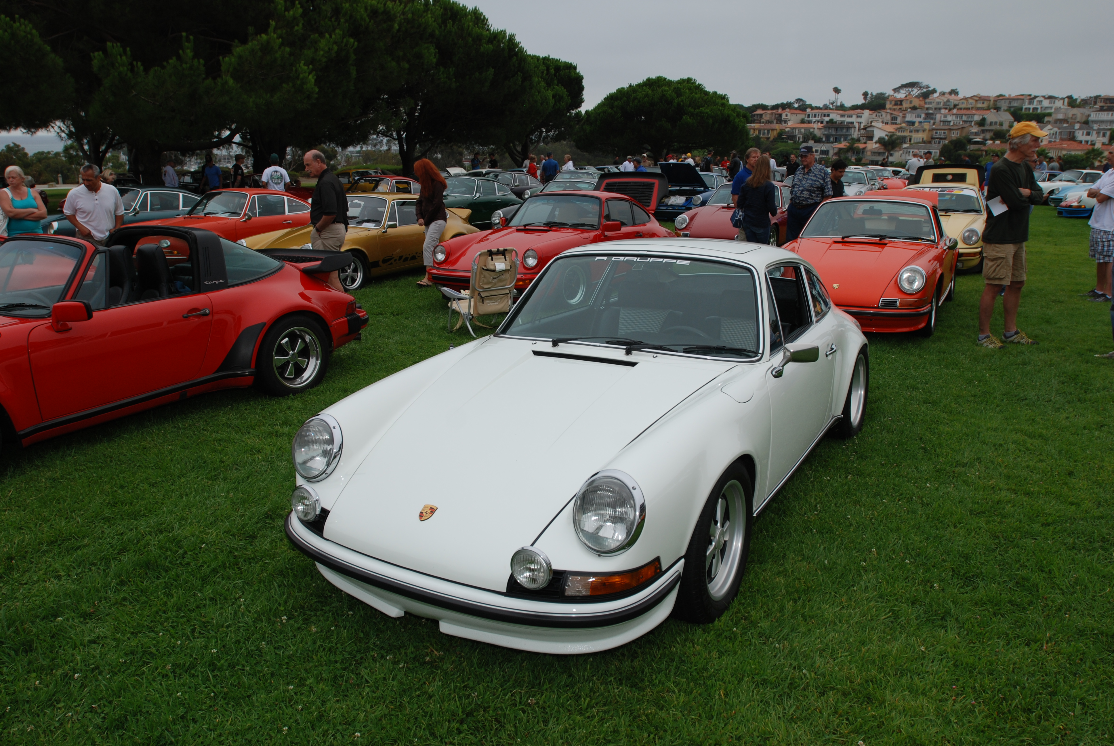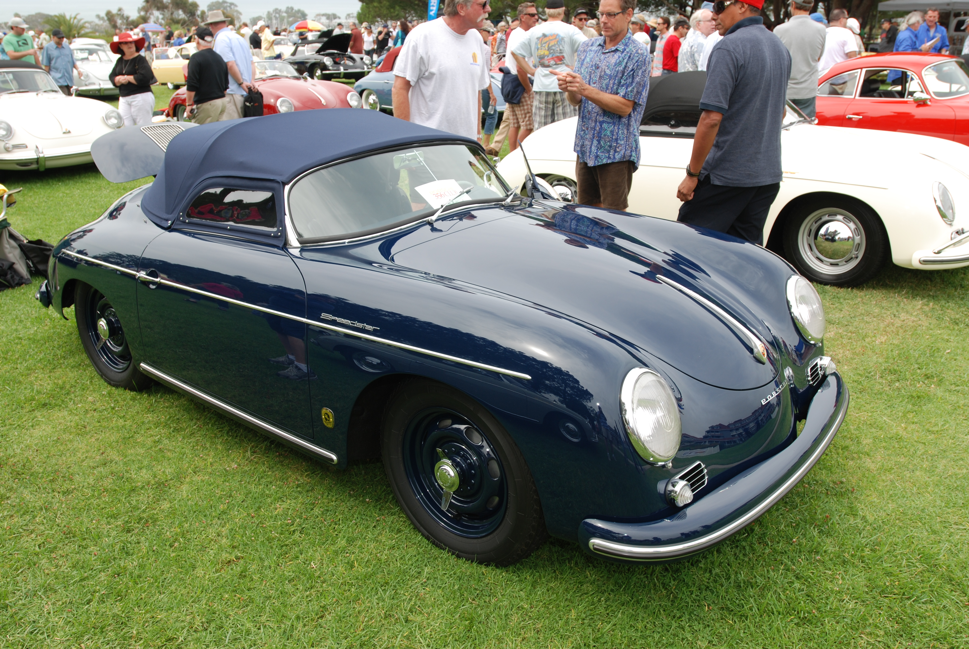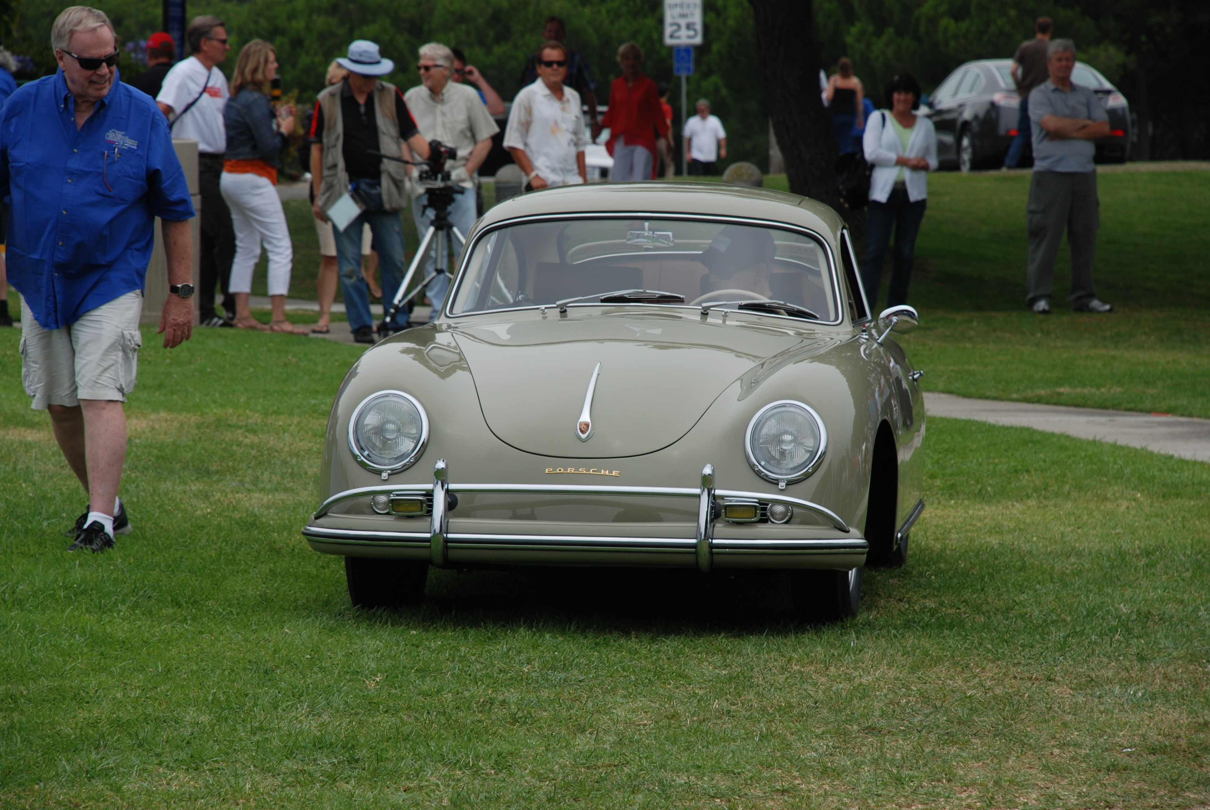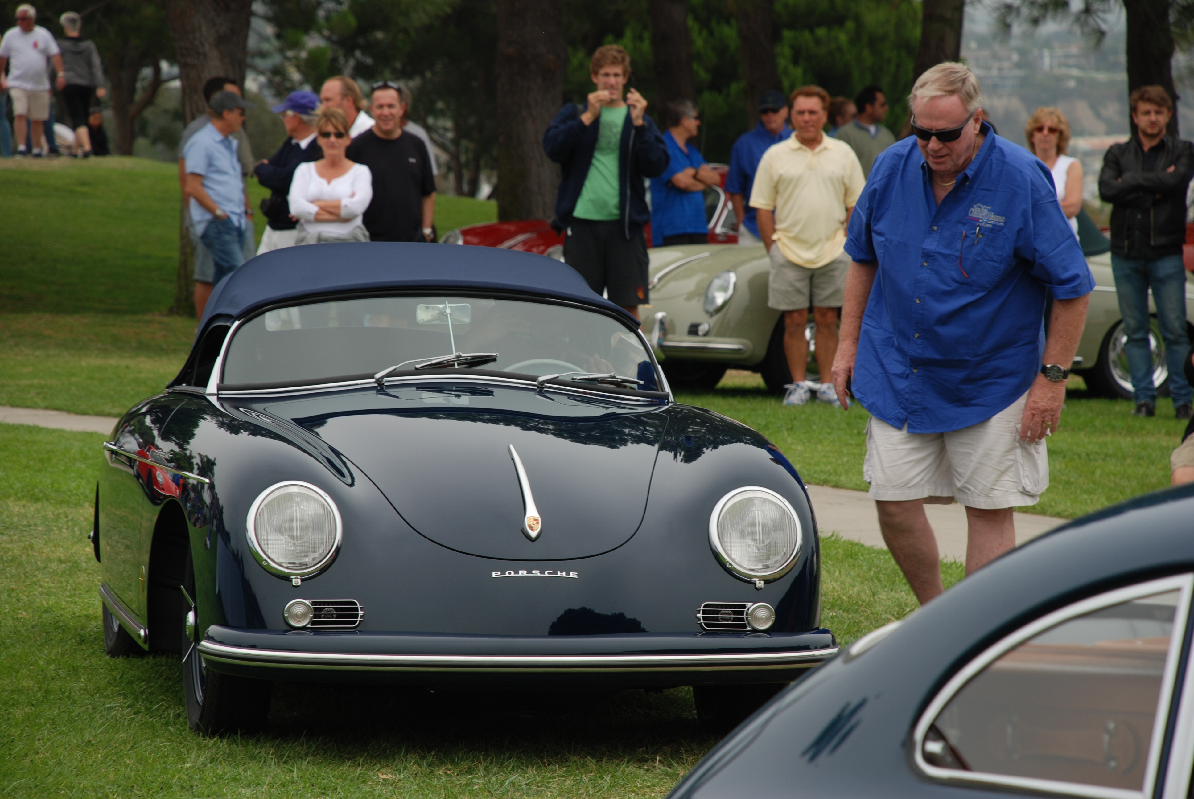 Sunday morning July 21 dawned cool and gray. Would this be another year for the 356 Club of California, Dana Point Concours to be the victim of rain? This was a question discussed by my son and I as we cruised down the 5 freeway on our way to this years Dana Point Concours. As we turned off Pacific Coast Highway and approached the access road to Lantern Bay, we could already see a line of Porsches snaking up the hill leading to the Marriott hotel where the event is held each year on the lawn, overlooked by the hotel. We followed a Porsche 356 part way up the hill and then pulled off at the first turnout and tucked in line behind the other cars already waiting. As it neared 8 AM, the line finally began moving, and we all began inching up the hill. This proved to be a test of mettle for each car and its driver; nothing like a test of ones hand brake, clutch and throttle skills for ascending a steep hill under bumper to bumper traffic with a Porsche directly ahead and behind…