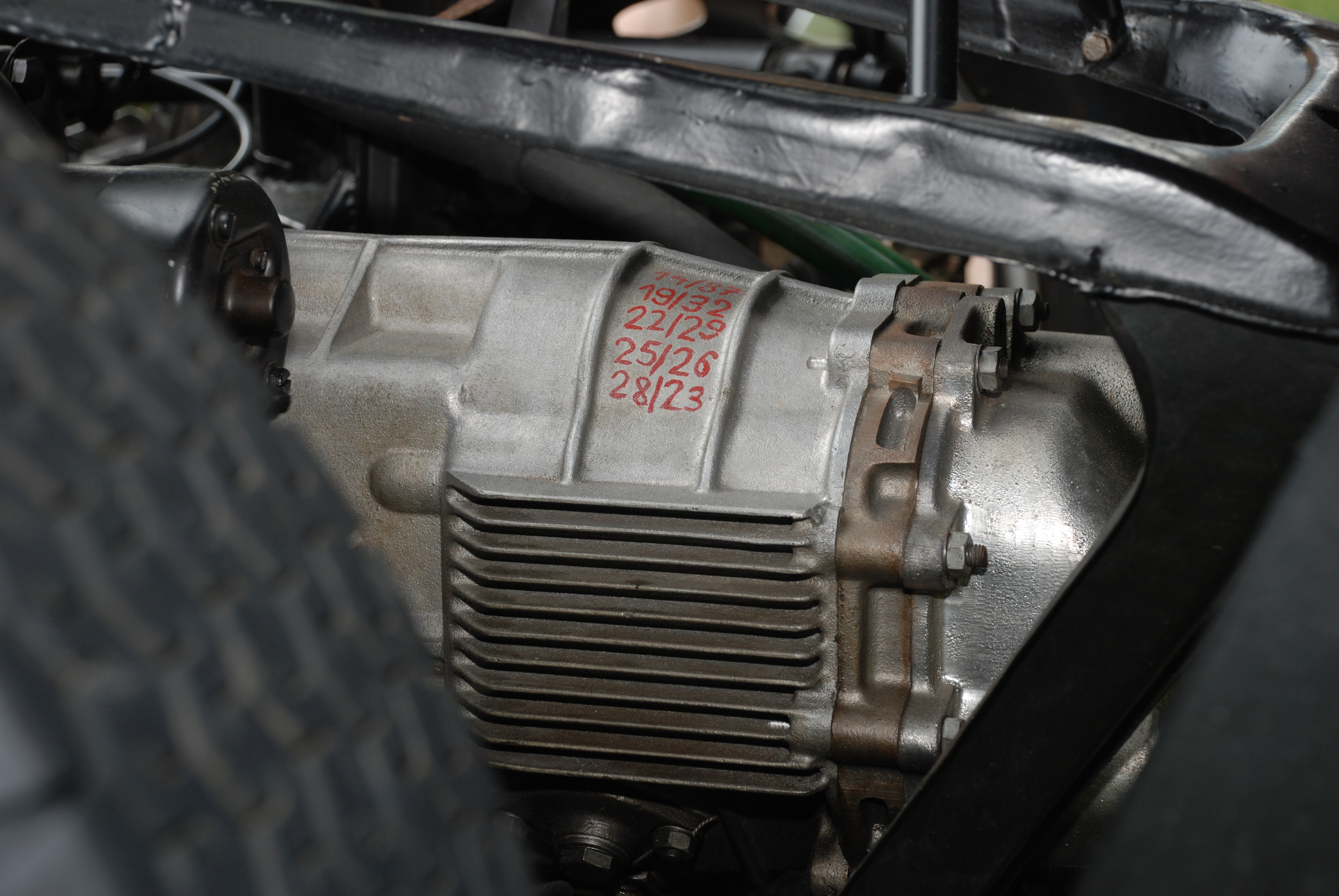 The writing on the wall, or in this case on the transaxle; gear ratios recorded for future reference (see below).
