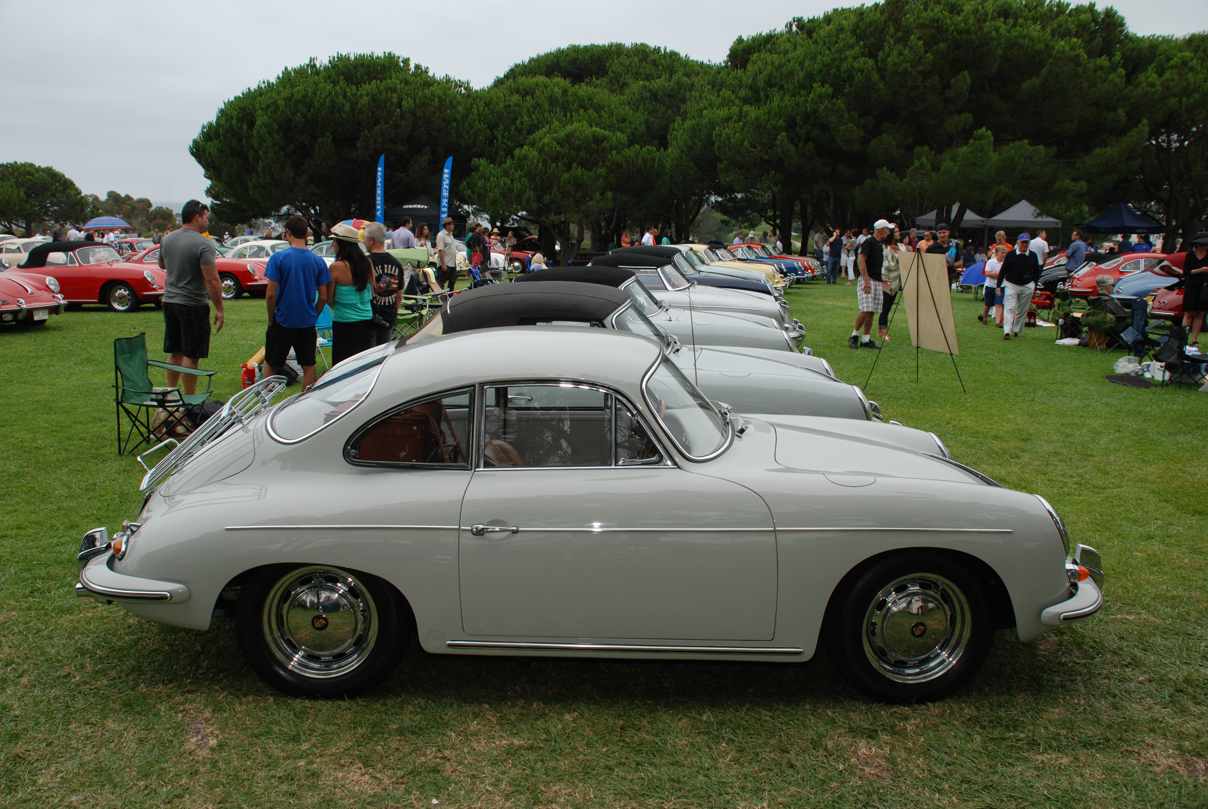 And now for something completely different… row after row of Porsche 356 models, cleaned, polished and aligned for this years featured event; the 356 Club of California, Dana Point Concours.