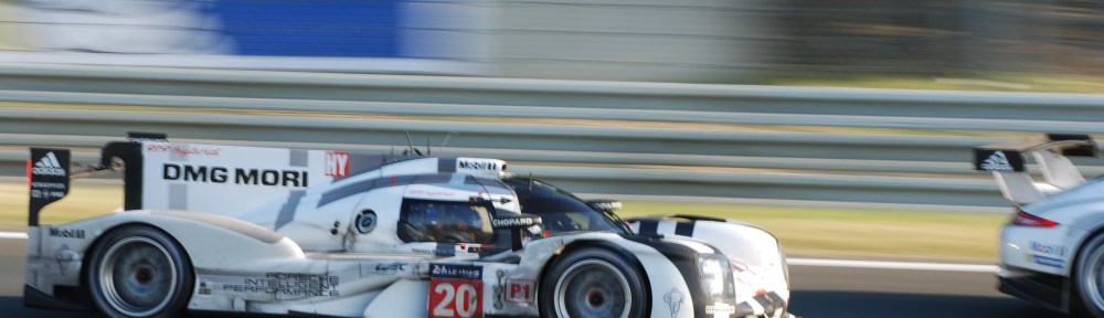 Then from the direction of the start/finish line, a roar went up from the grandstands, just as the clock struck 3:00pm, signaling the start of the race. Continuing this crush of sound were the first cars to come into view; an  R18 Audi e-tron followed closely by a Toyota TS040 hybrid and Porsche 919 hybrid…
