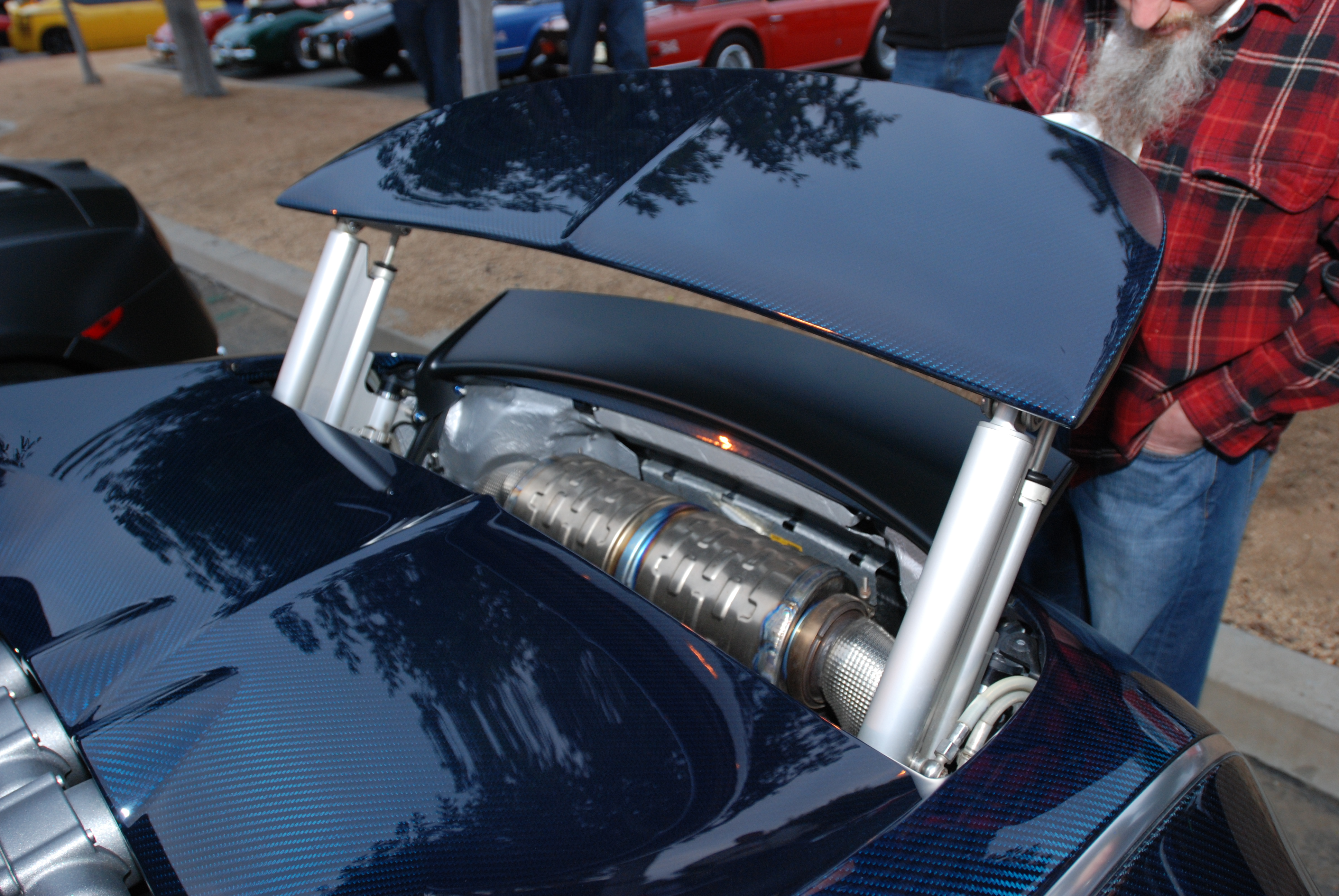 The Dino’s front hood made for the perfect mirror, and it wasn’t until I got home and was reviewing my shots that I realized the full extent of the reflections captured. I had not only recorded the reflections from the Bugatti and Lamborghini parked just across the row, but had also captured the images of two of the commentators from the Speed Channel (Bob Varsha and Mike Joy) standing nearby, who happened to be in town broadcasting from the Barrett – Jackson / Orange County auction.