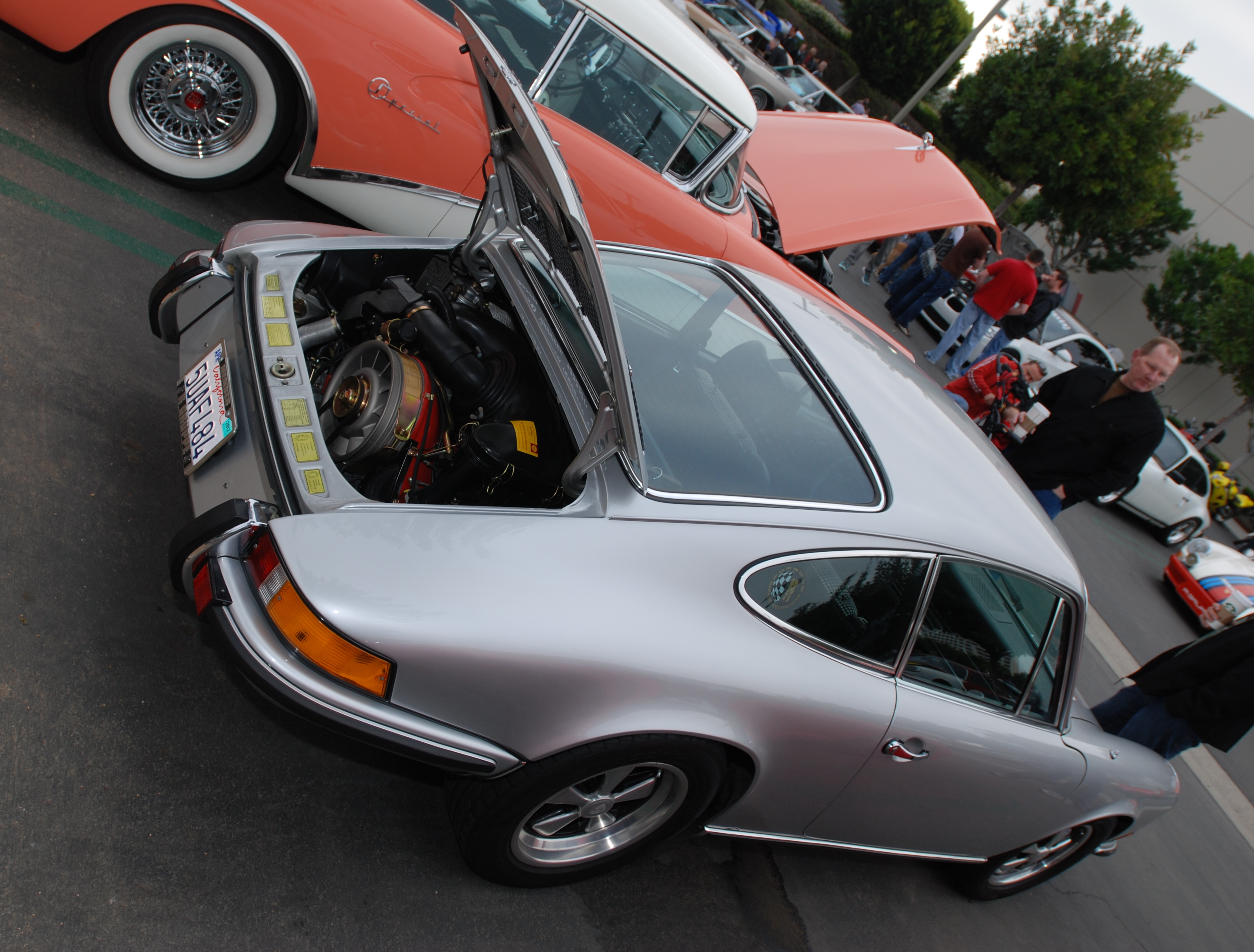 My first encounter that morning was with this beautiful 1973 Porsche 911T as seen below, wearing the rare, period correct color; “Aubergine” (Porsche paint code # 025).