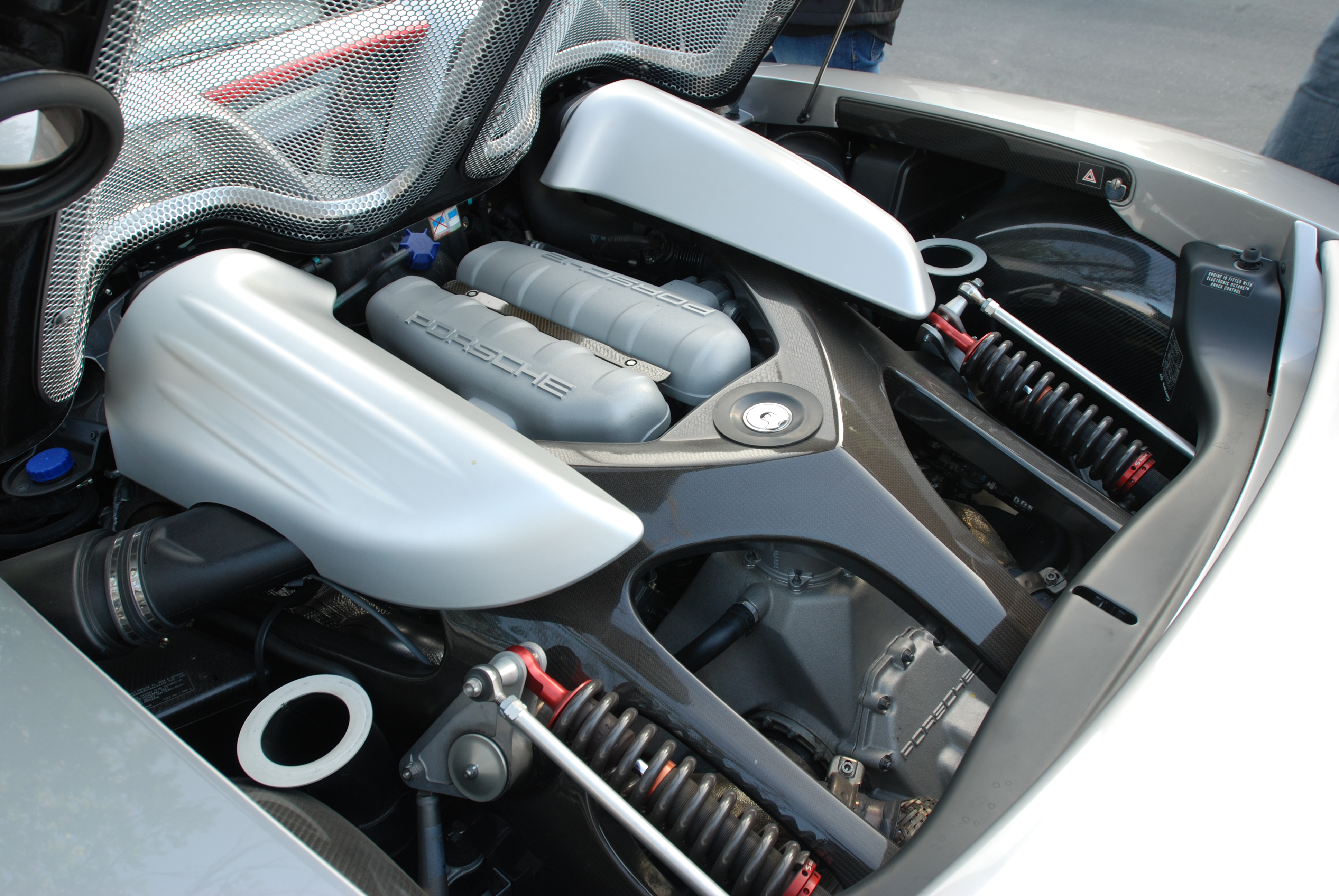 A close up of its modified, 3.2 liter, carburetted twin plug flat six.