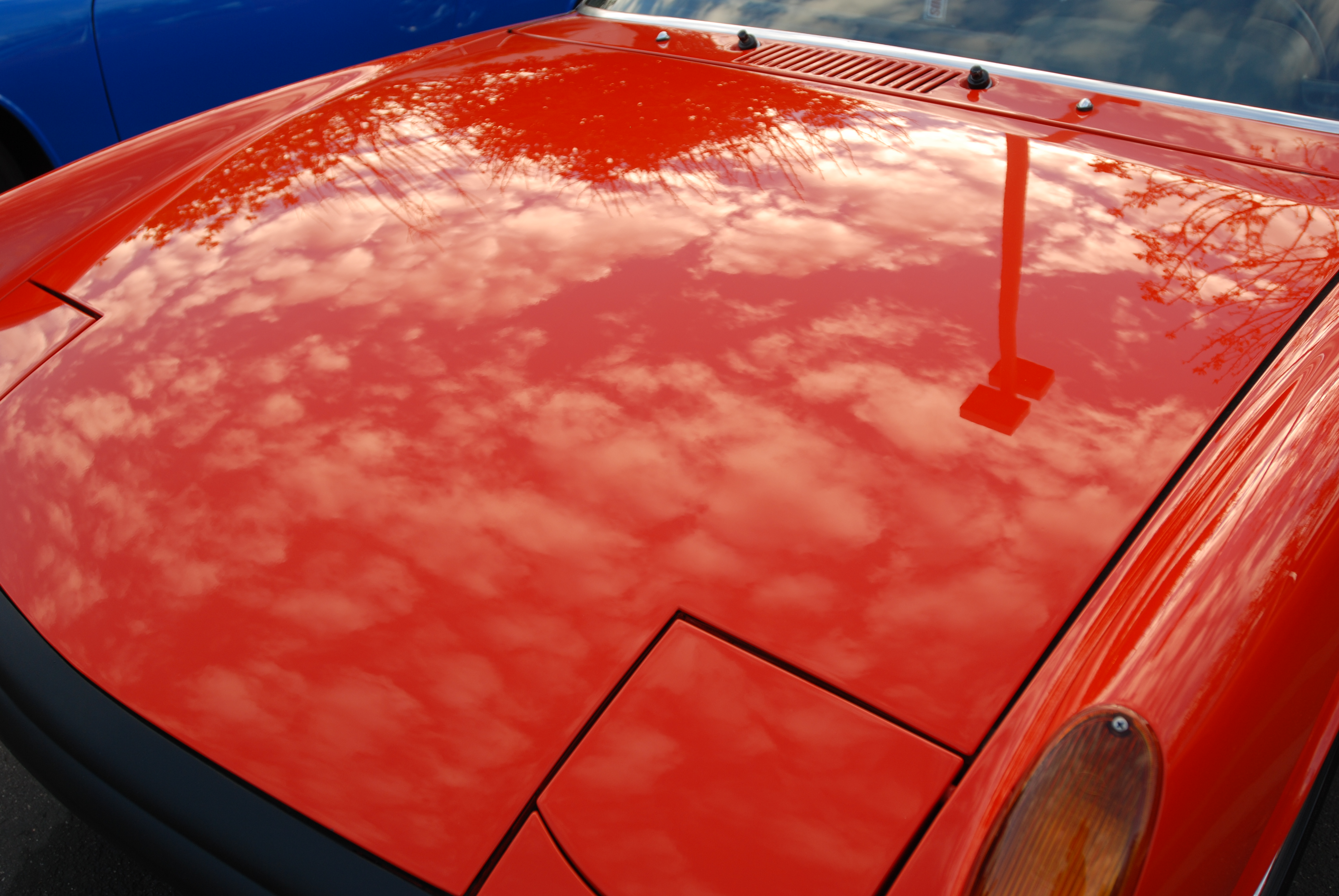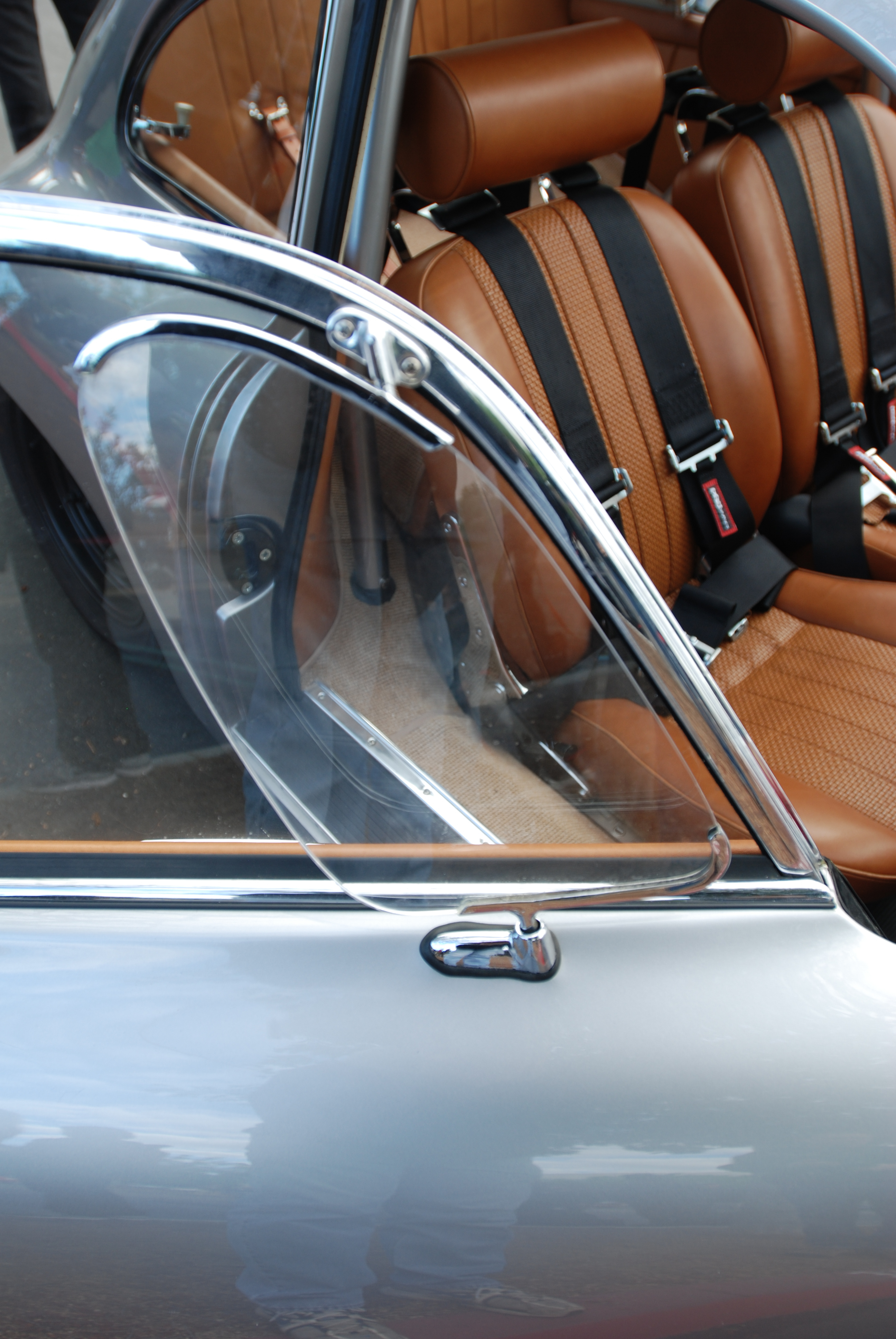 Further down the row, awaiting discovery by fans of english sports cars, was this beautifully restored Austin Healey 100, adorned by an assortment of rally badging, and flanked by a pair of driving lights complete with stone guards.