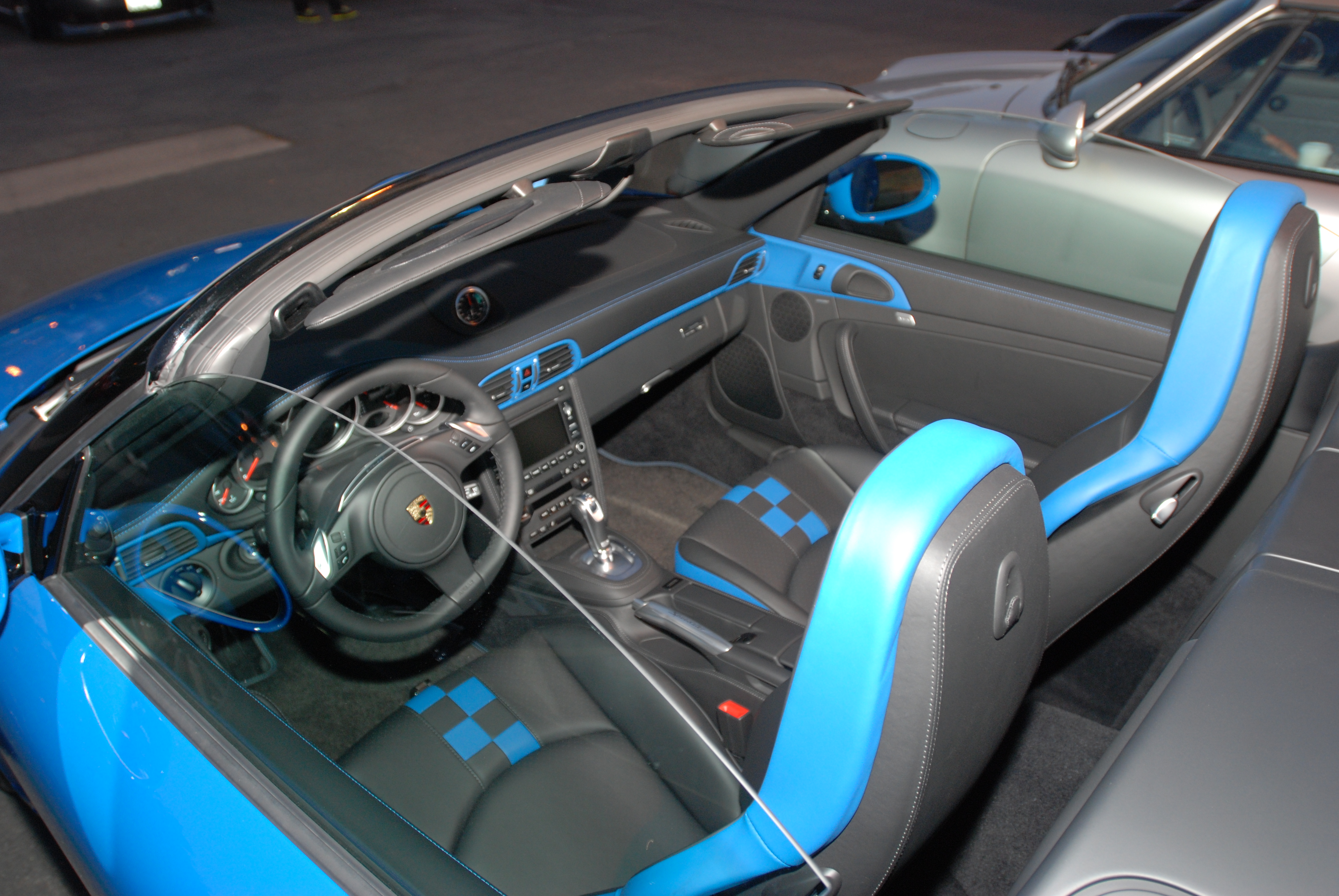 One of the first cars that I observed drive into the lot by the glow of its headlights, and then settle on Porsche row, was this rare 2011 Porsche type 997 Speedster, in Pure Blue.