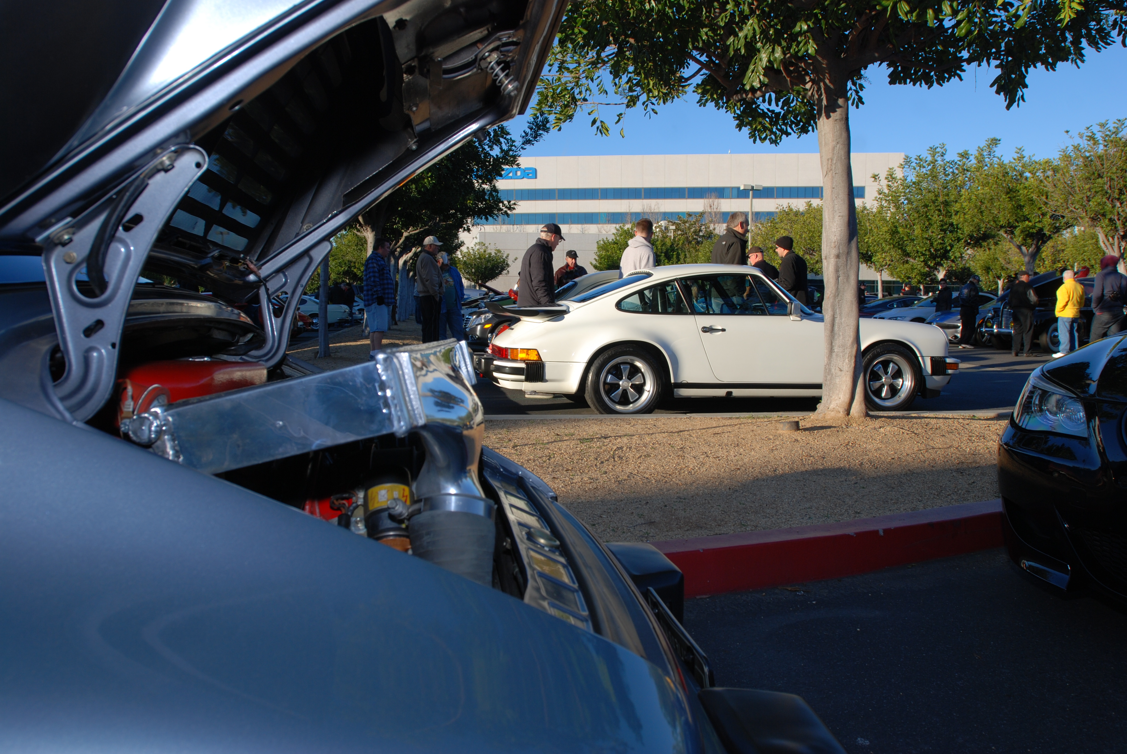 For a change, the early morning skies Saturday morning were clear and dry. As I pulled into the parking lot still cloaked in darkness, I was waved into the “featured” lot, to join the already present assortment of rainbow-hued Porsche 911’s. As I rounded the parking median, I encountered my friend Gene backing his black 930 turbo into a corner parking spot, and after he was settled in, I grabbed the space immediately to his right. As the lot continued to fill with even more 911’s, my friend Dave arrived in his 1984 Slate Gray 930 Turbo, debuting a brand new, upgraded turbo motor. By the time the sun had risen, the lot was filled with an even greater variety of Porsches, and what an amazing, colorful collection it was…