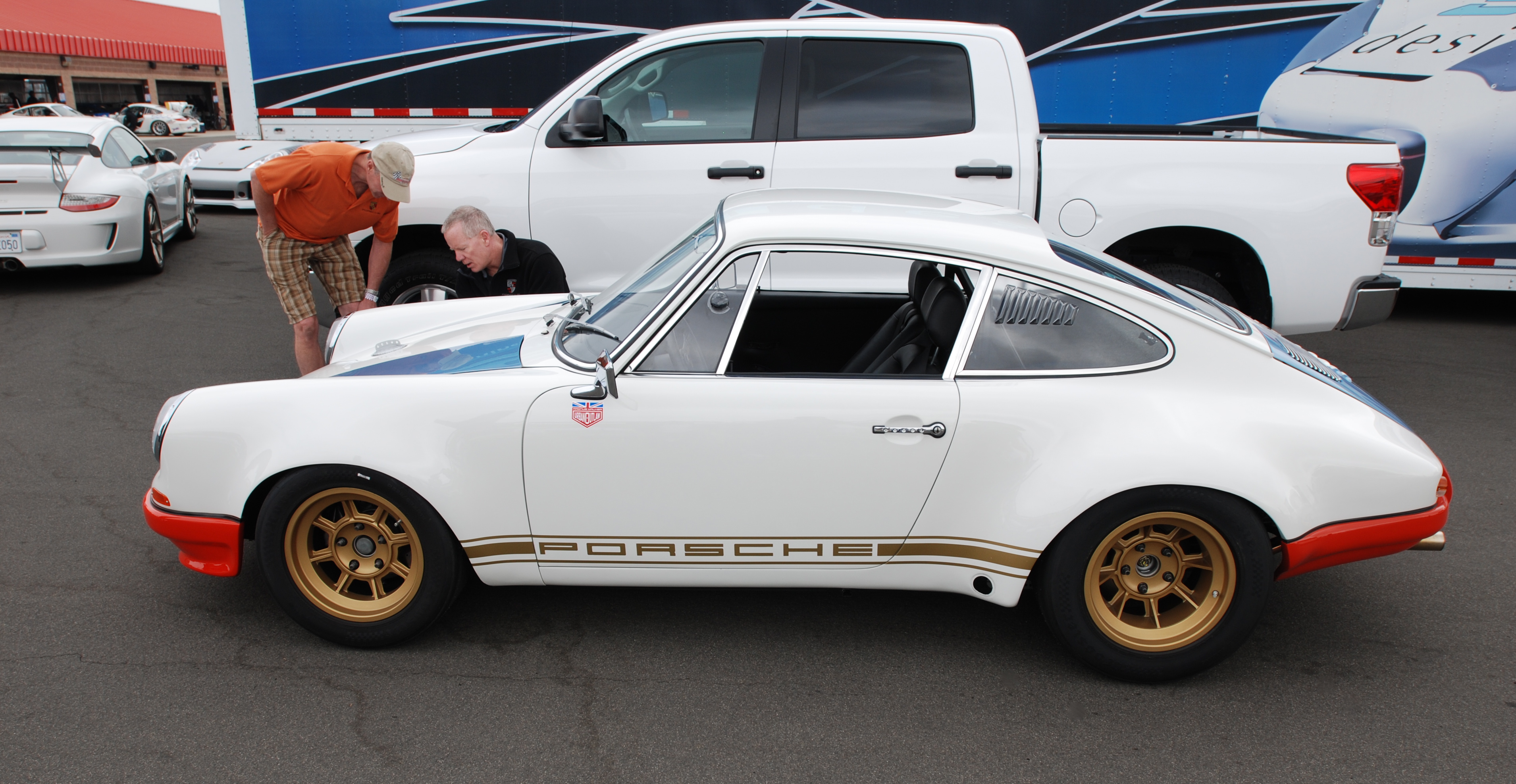 So as I made my way towards Garage 3, out of the corner of my eye I noticed a car up to that time that I had only seen in photos, but never in person until earlier that morning at check-in. Now I was face to face with the car, and ironically it was parked immediately across from the 50th Anniversary Celebration of the 911 display. The car in question belonged to none other than Magnus Walker, a high-profile member of the Southern California Porsche community, recognized collector of early 911s and creator of the Urban Outlaw brand. Now in front of me was the latest project come to life; his 1972 Porsche 911STR #002.