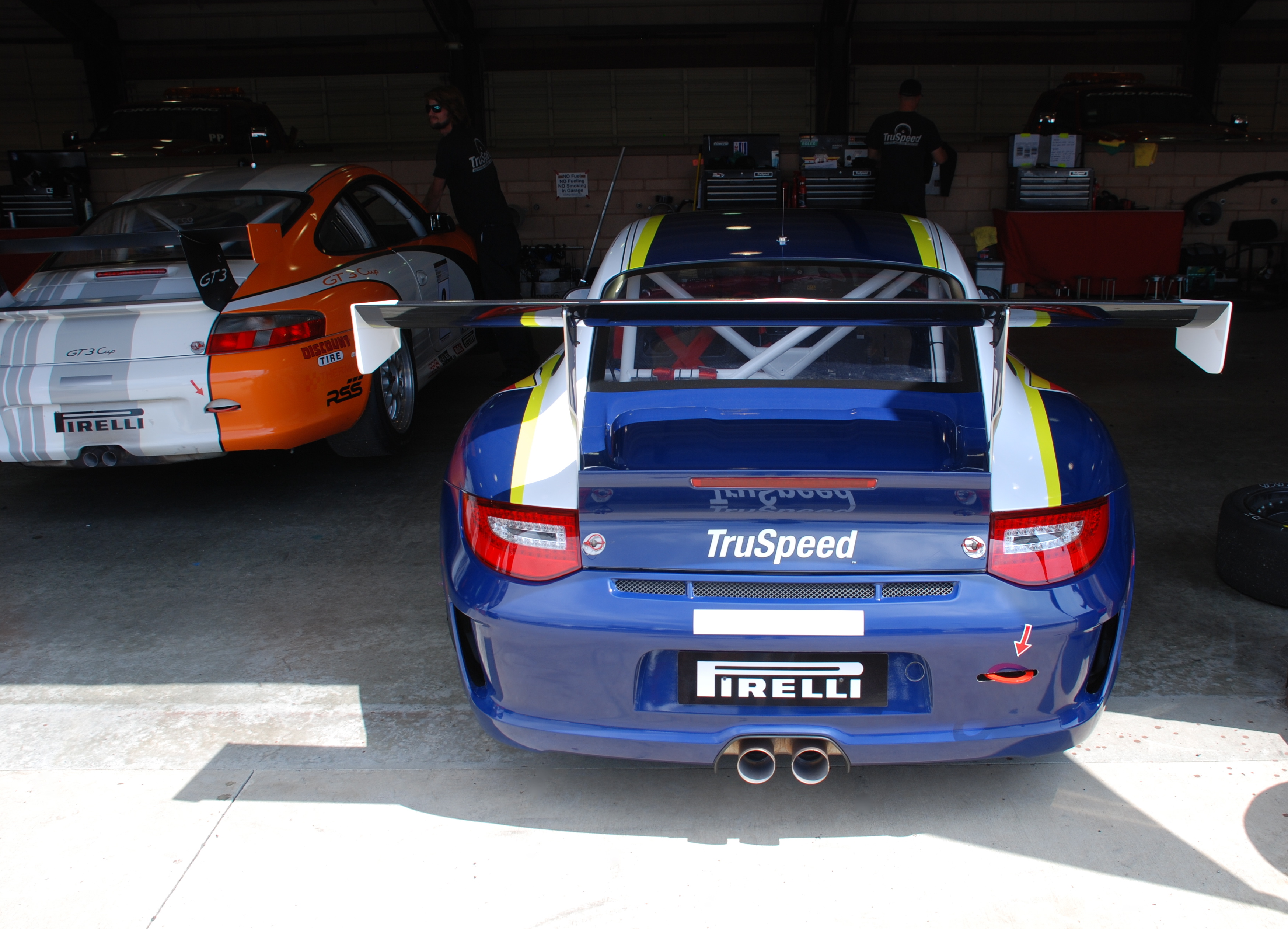 As I pulled into the driveway and approached the TruSpeed car, even under low light conditions, I could see what appeared to be battle scars acquired from competition. I then recalled seeing a shot of a similar car from the previous weekends race coverage of the 24 Hours of Daytona, on the Speed Channel. So after parking and grabbing a quick bite, I was off to check out the Porsche race car.