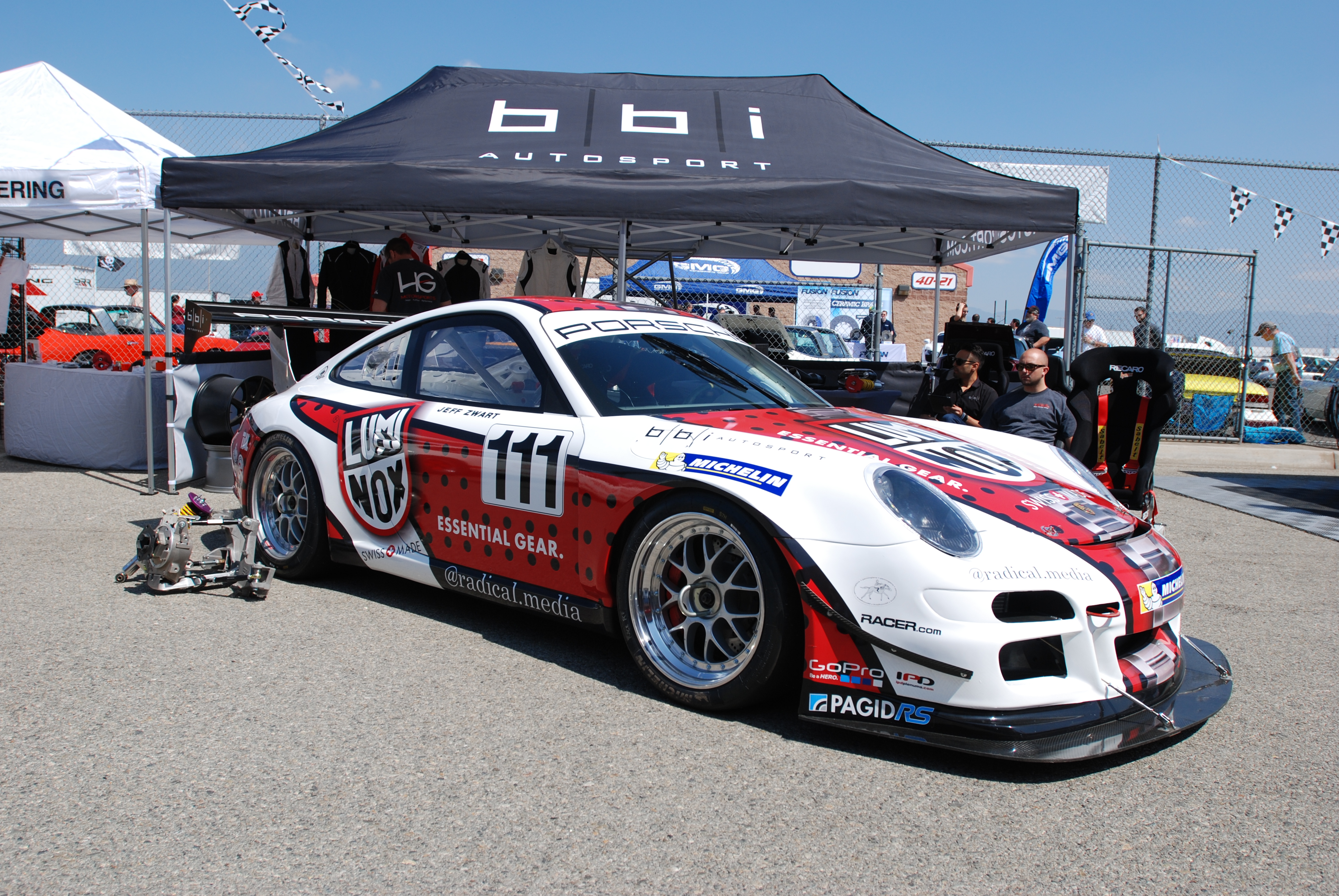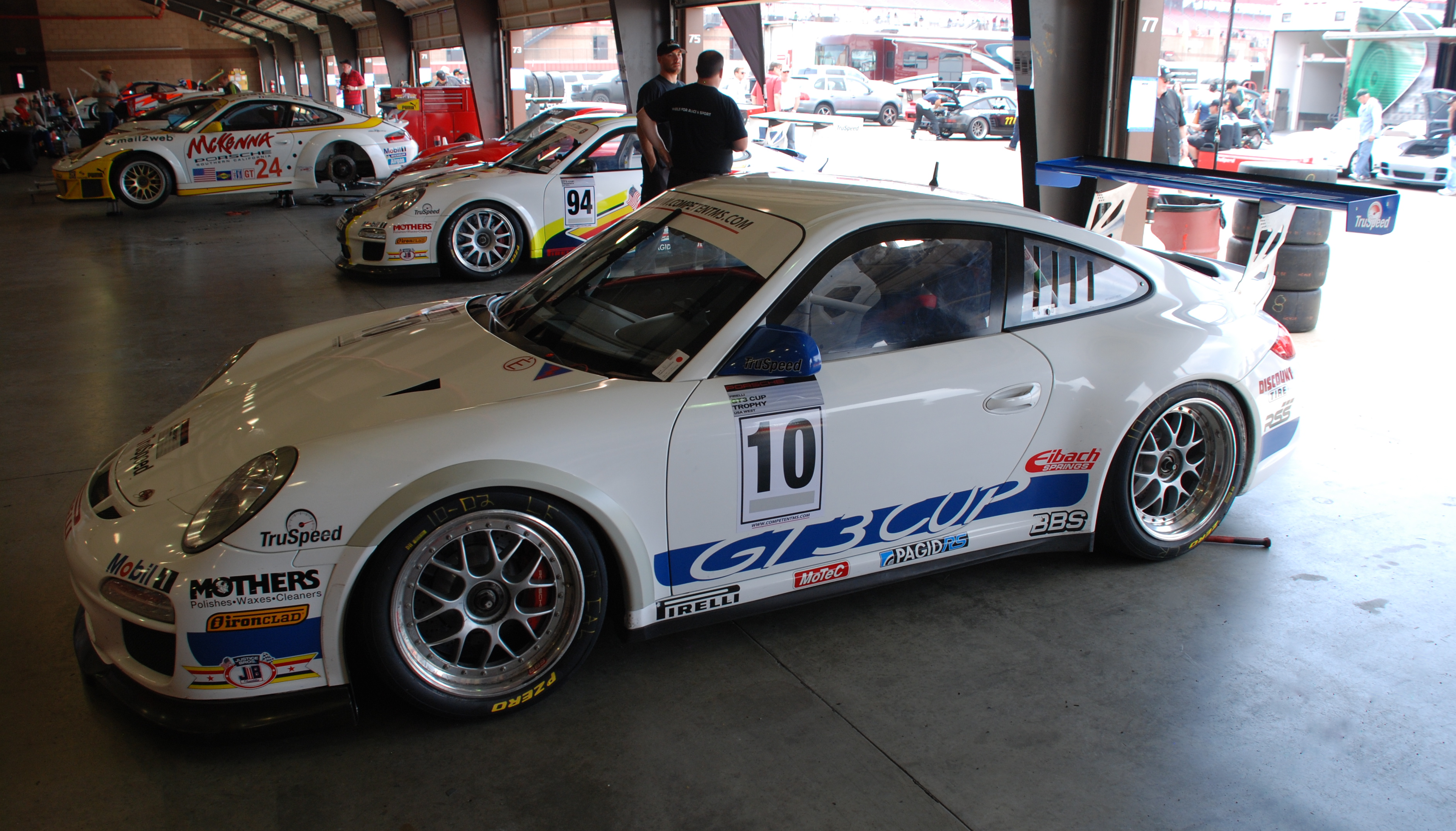 Located on the other side of the block wall, opposite the Audi R8 bay, was a bevy of Porsche GT3 Cup cars, all being prepared for the days scheduled events…