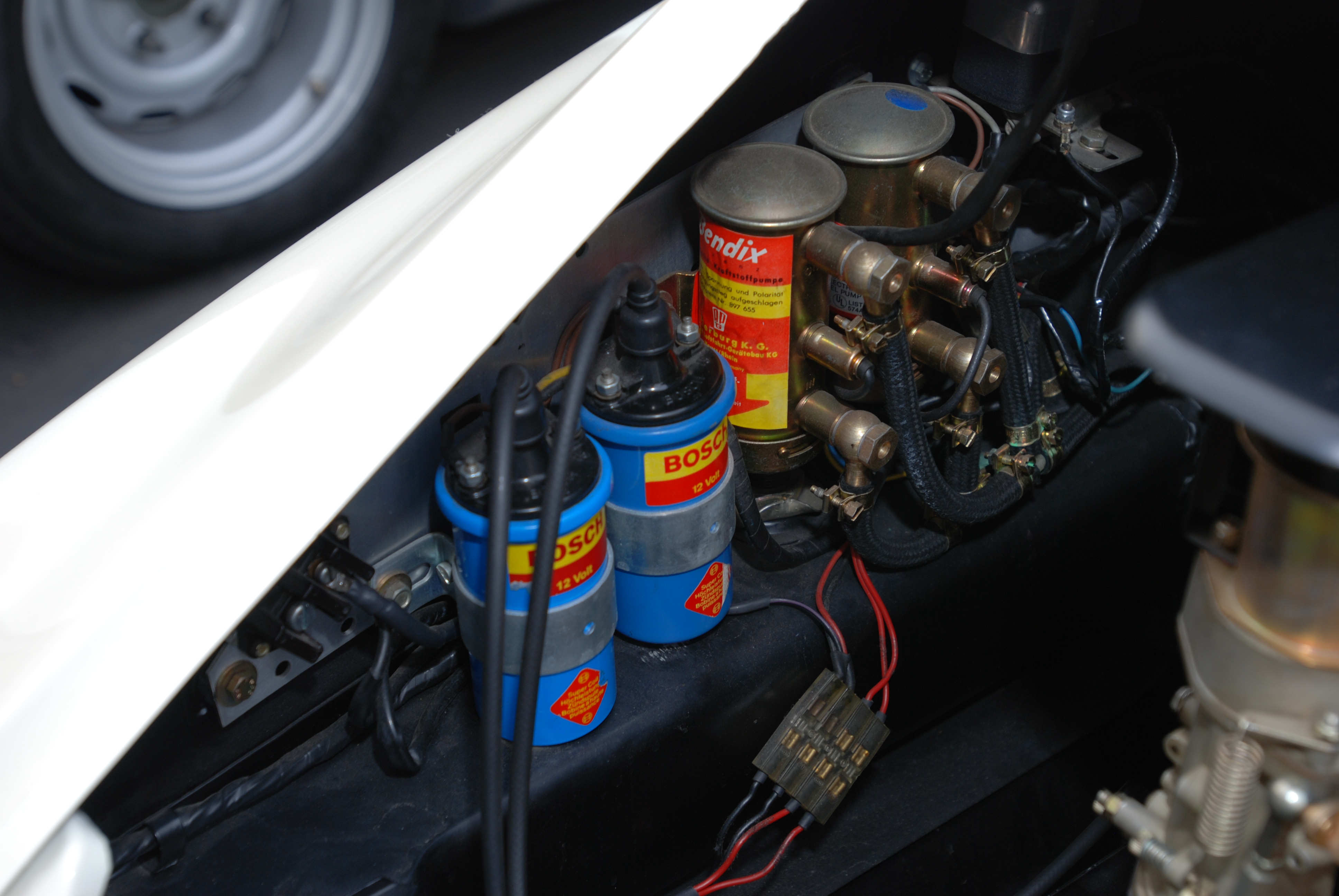 This back story was shared by none other than Dieter Inzenhofer (of Andial fame and as seen in the photo below), upon viewing #17’s motor. He immediately recognized it as one of his early rebuilds, in particular due to the 910 slide valve fuel injection system as installed. Dieter noted that he had personally sourced and installed this very system onto the motor for this car while he was employed by Vasek Polak. This information was also shared with Kevin Watts of Road Scholars (seen in the yellow shirt), and who just happens to manage the Ingram Collection. This new information can now be used to bridge some of the gaps in #17s past history, prior to its acquisition by the Ingram Collection.