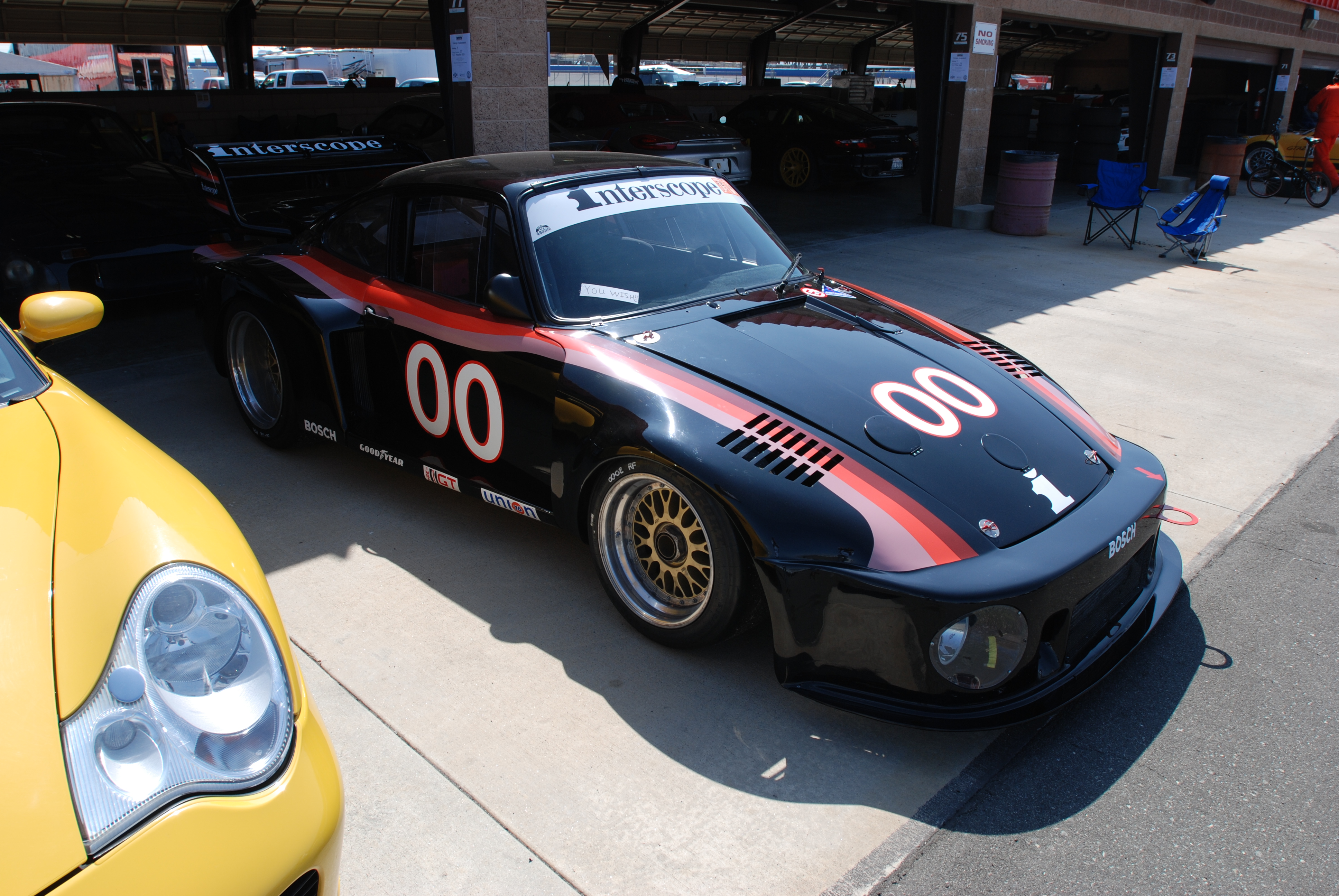As I approached, I recognized several friends from TruSpeed’s staff: Terry Brewer from their Sales Department, and Dennis Aase. one of Southern California’s premier Porsche race car drivers, and currently Truspeed’s Racing Manager. ( I first met Dennis back in 1972, while purchasing parts for my 1966 Porsche 911, from his company ( Aase Brothers Dismantlers), that specialized in used Porsche parts. I also would run into Dennis throughout the 1970’s and 1980’s at the IMSA series races when they came to the west coast. Dennis campaigned a 2.5 liter Porsche 911 in IMSA’s GTU class ( which can be seen below): his Porsche 911 on pit lane, taken during practice and qualifying for the 1980 Los Angeles Times 6 – hour enduro held at Riverside Raceway.