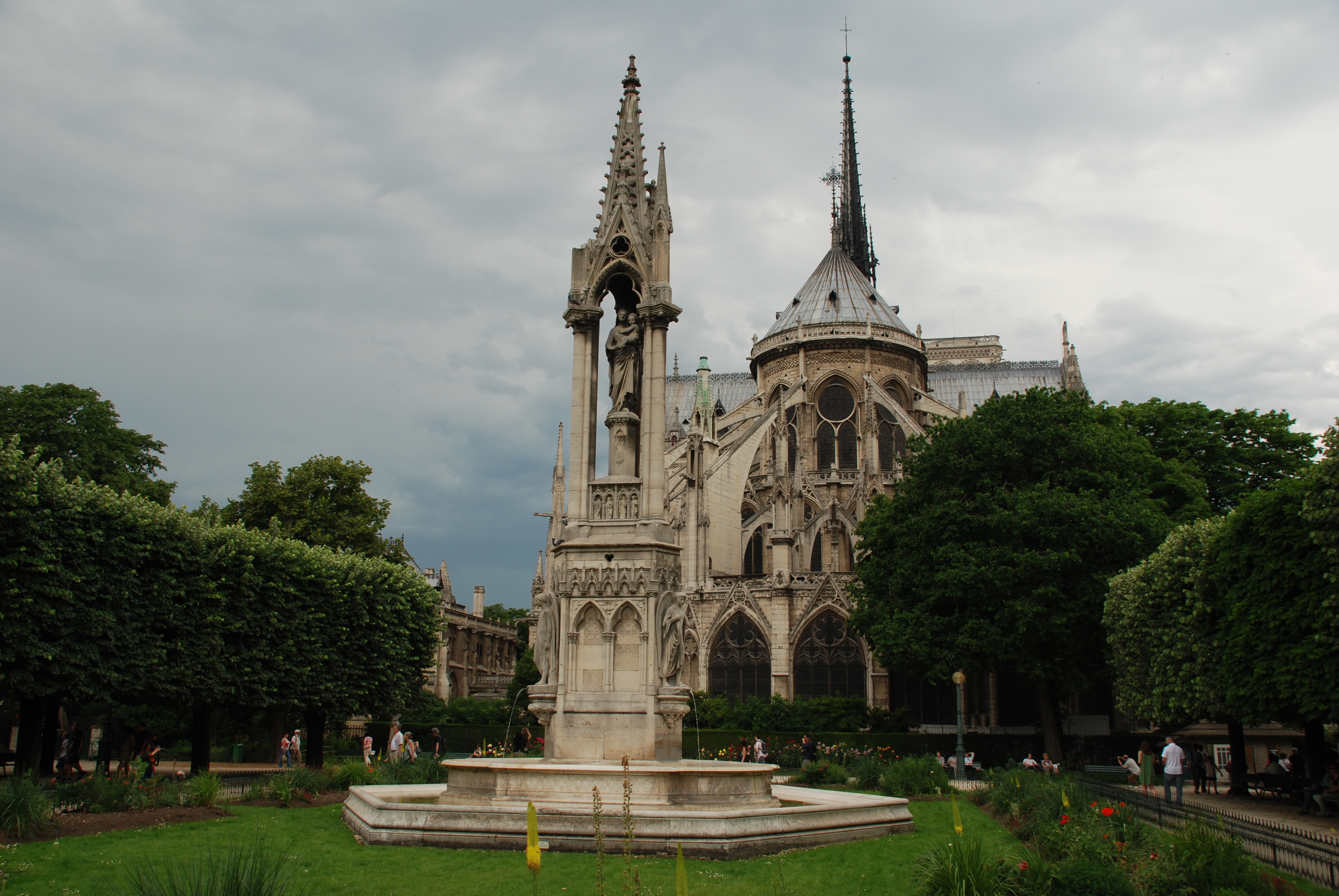 Within 10 minutes of taking the photos above (the less seen side and back views of Notre Dame), the gray clouds intensified, and rain began falling. This quickly sent everyone running for cover or for those prepared, reaching for their umbrellas. Nothing new for Paris in early June…