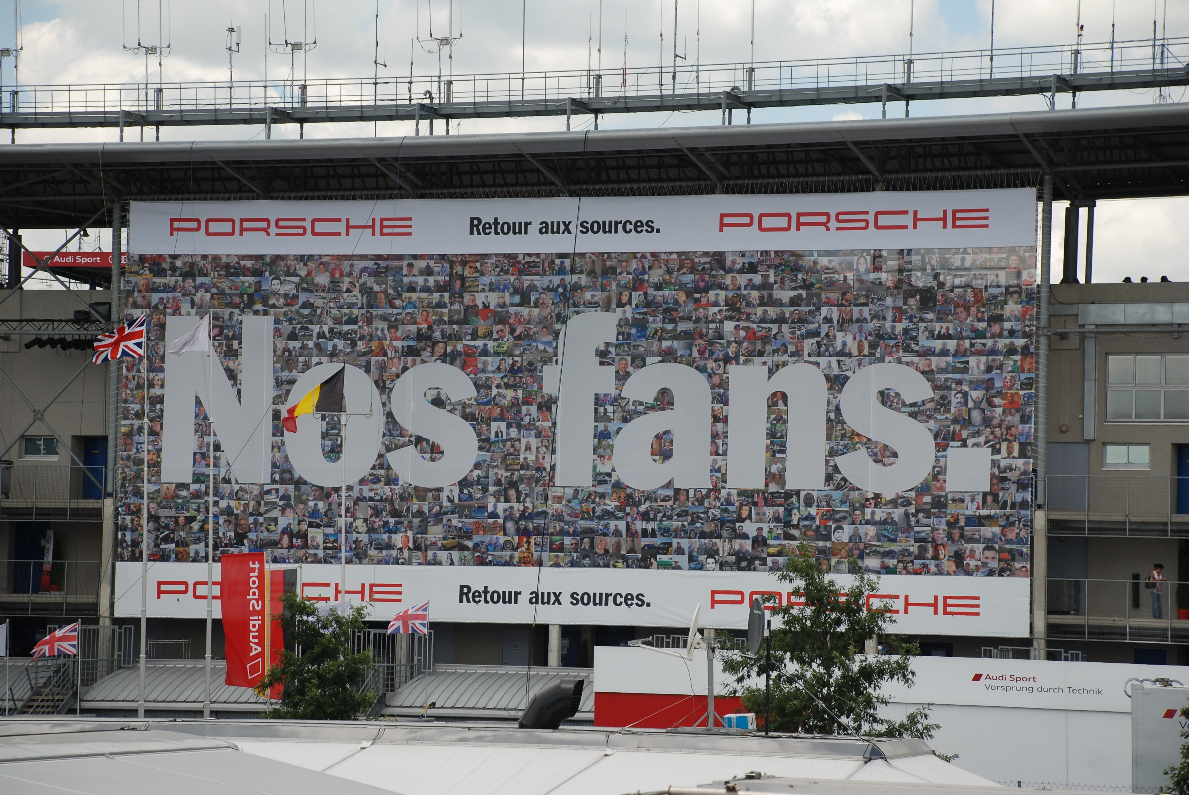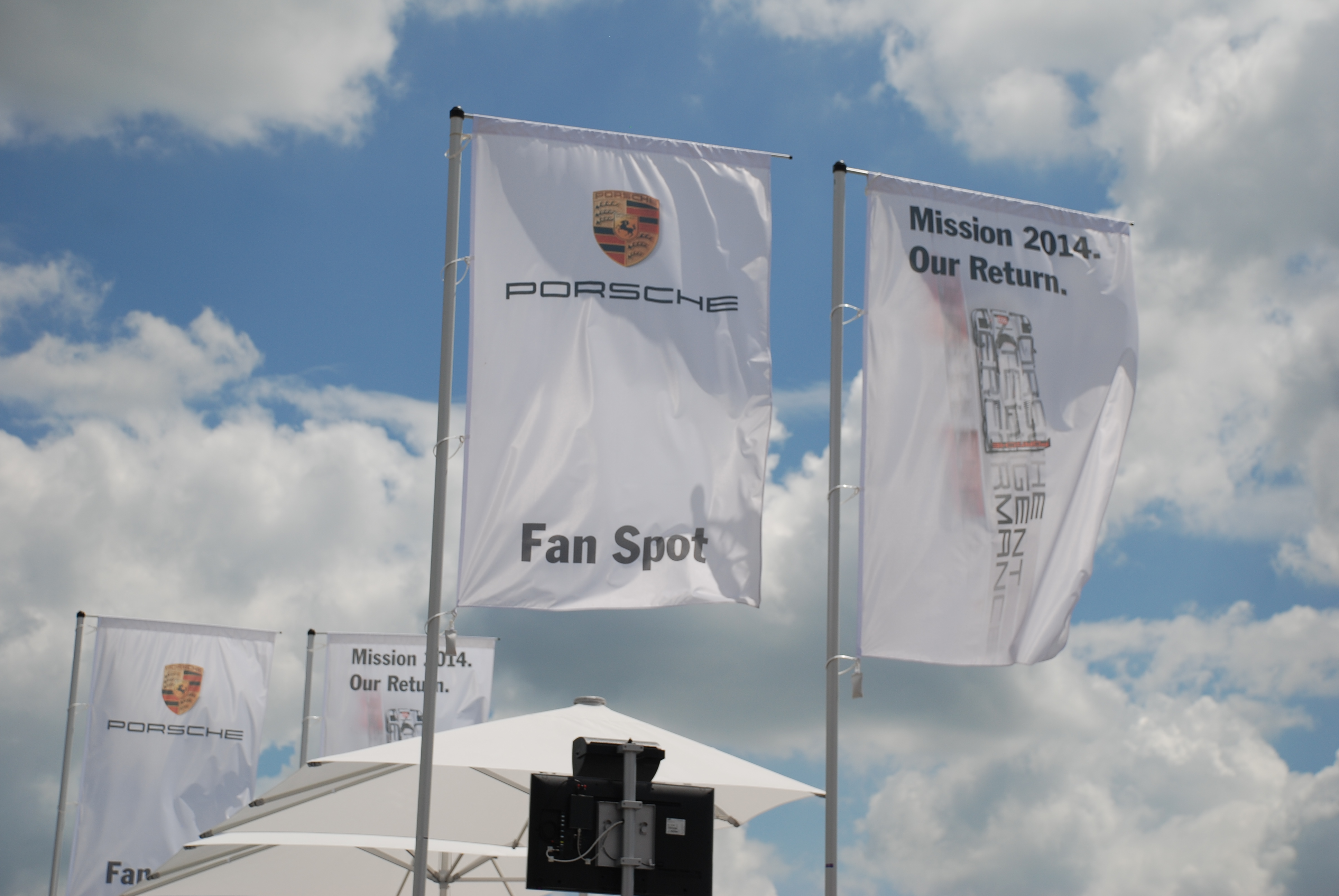 Ironically, located immediately behind the Porsche Fan Spot boutique was the Paddock area and the entrance to the garages, pit area and pit lane grandstands. And as the following photos illustrate, Porsche took full advantage of this particular area to advertise their 2014 return to Le Mans…