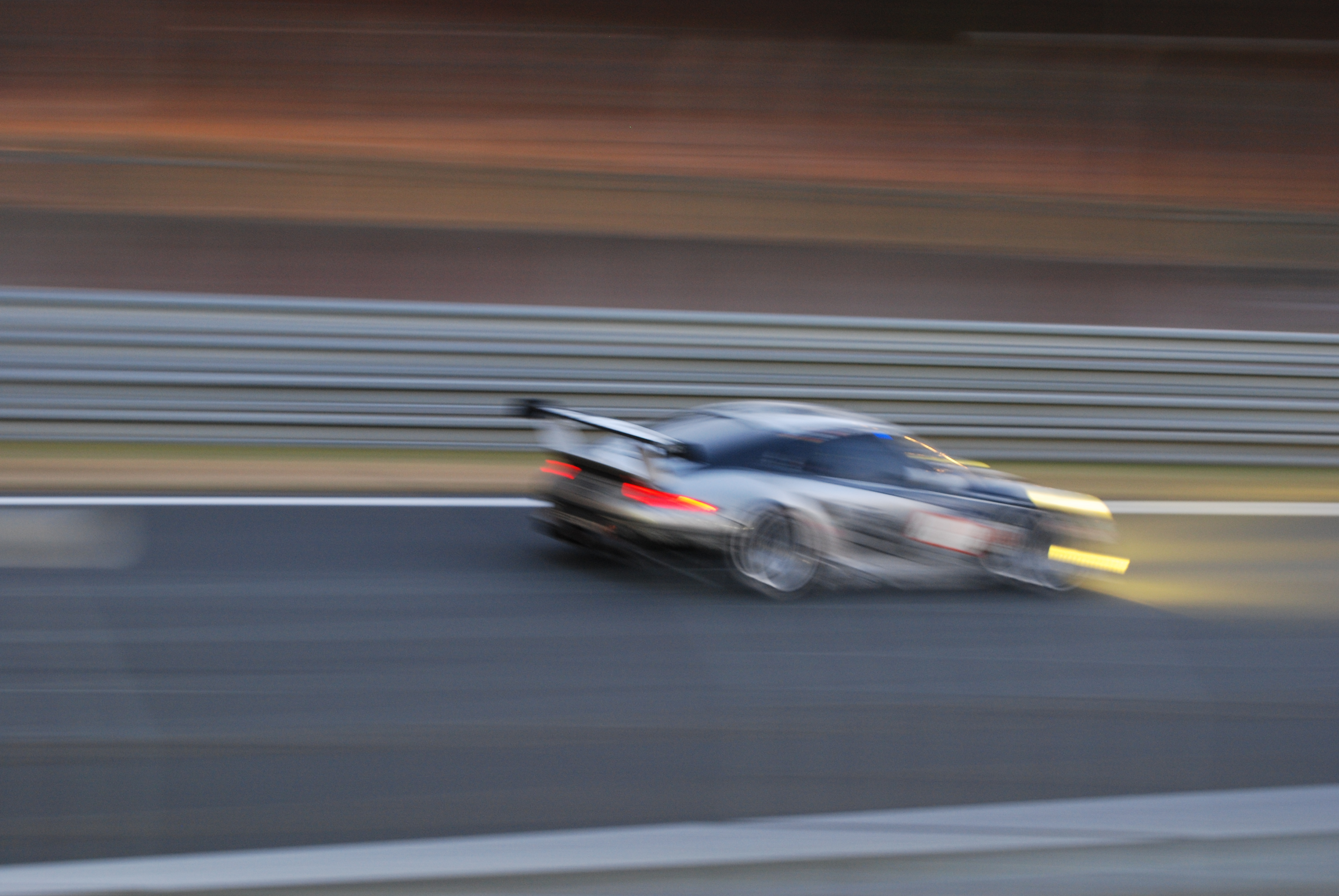 So after my quick dinner, it was time to continue my exploration of the track, which was beginning to fall under a cloak of darkness. Since I was still in the proximity of the Dunlop chicane, I decided to check out the area between the Dunlop bridge and the Tertre Rouge bend. On the way, I stopped to watch the cars flying through the Esses, and capture some of the action ( these images were taken at around 10:30 pm).